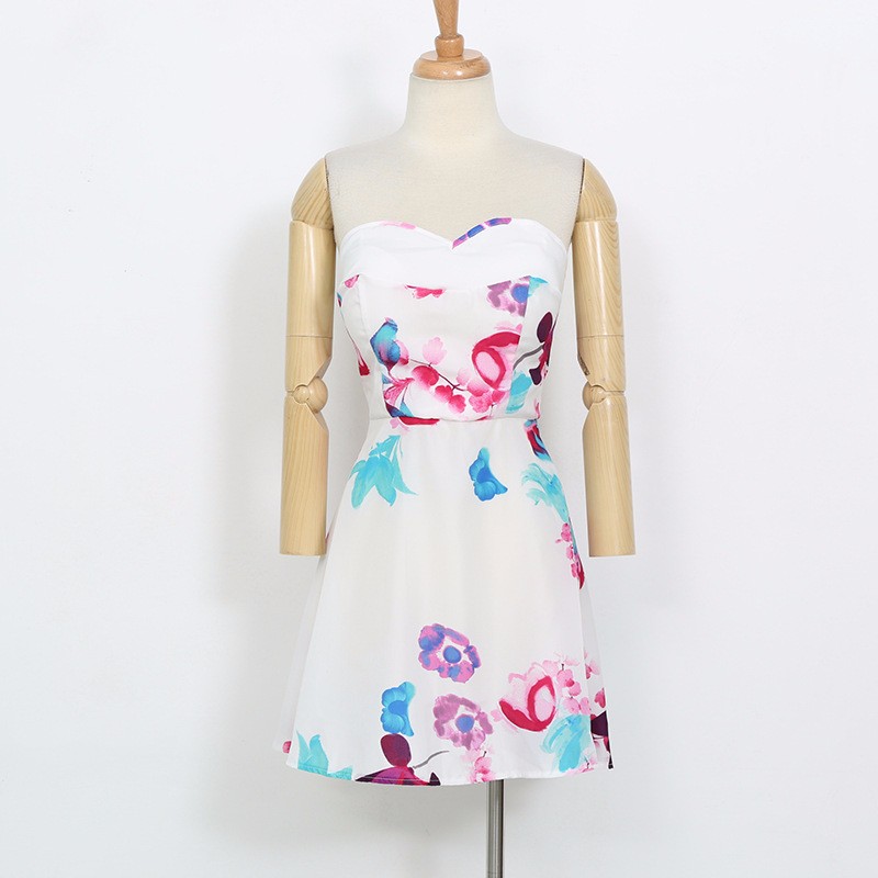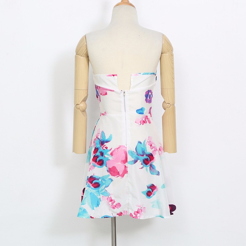 Heier Verkauf 2016 Neue Sexy Low-cut Sleeveless Wei Gedruckt Trgerlosen Kleid Prinzessin Kleid Ballkleid Minikleid