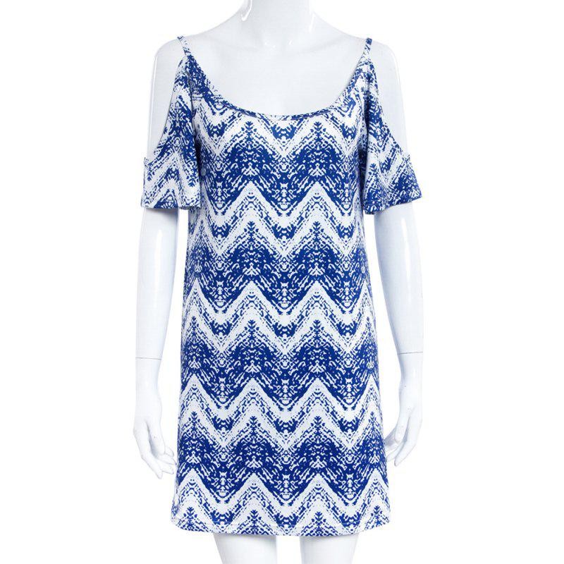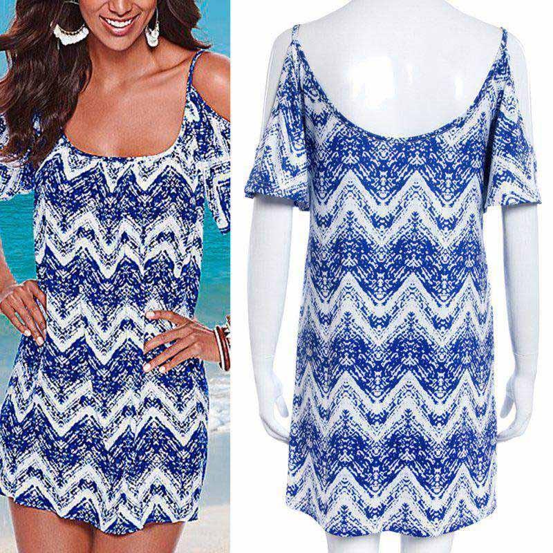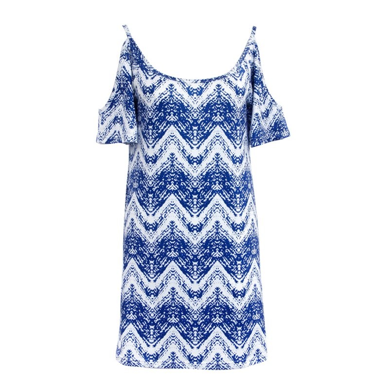 Sexy Frauen Sommer Schulterfrei Houndstooth Gedruckt, Figurbetontes Kleid Blau Muster Mini Sommerkleid