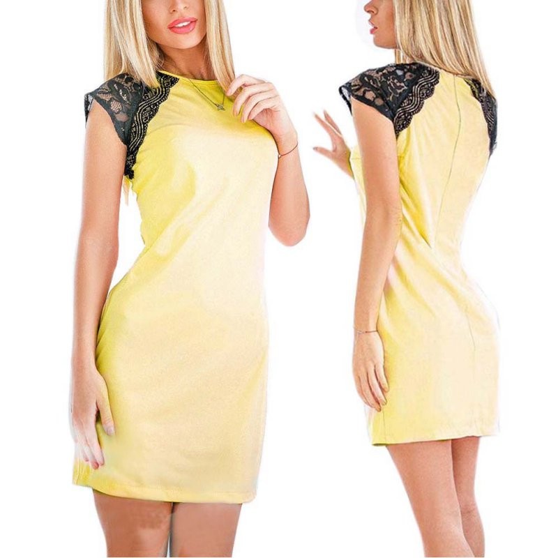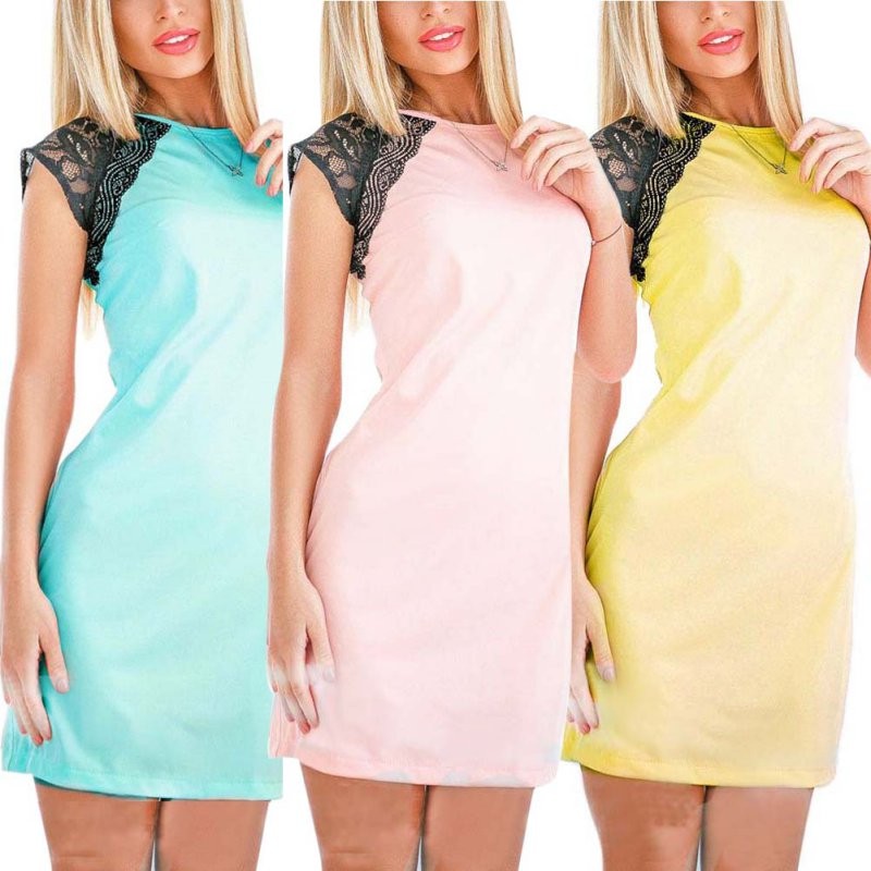 Hohe Qualitt Sommer Vestidos Mode Minimalistischen kleid Spitze Aushhlen Patchwork Sexy Kurzarm Frauen Kleider