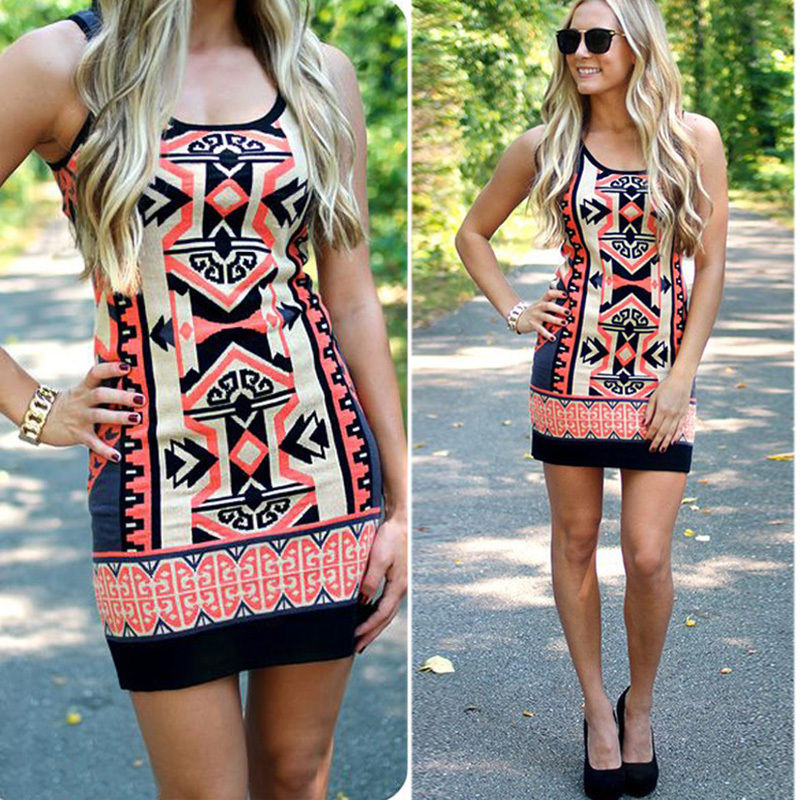 ärmelloses kleid, minikleid, bohomuster