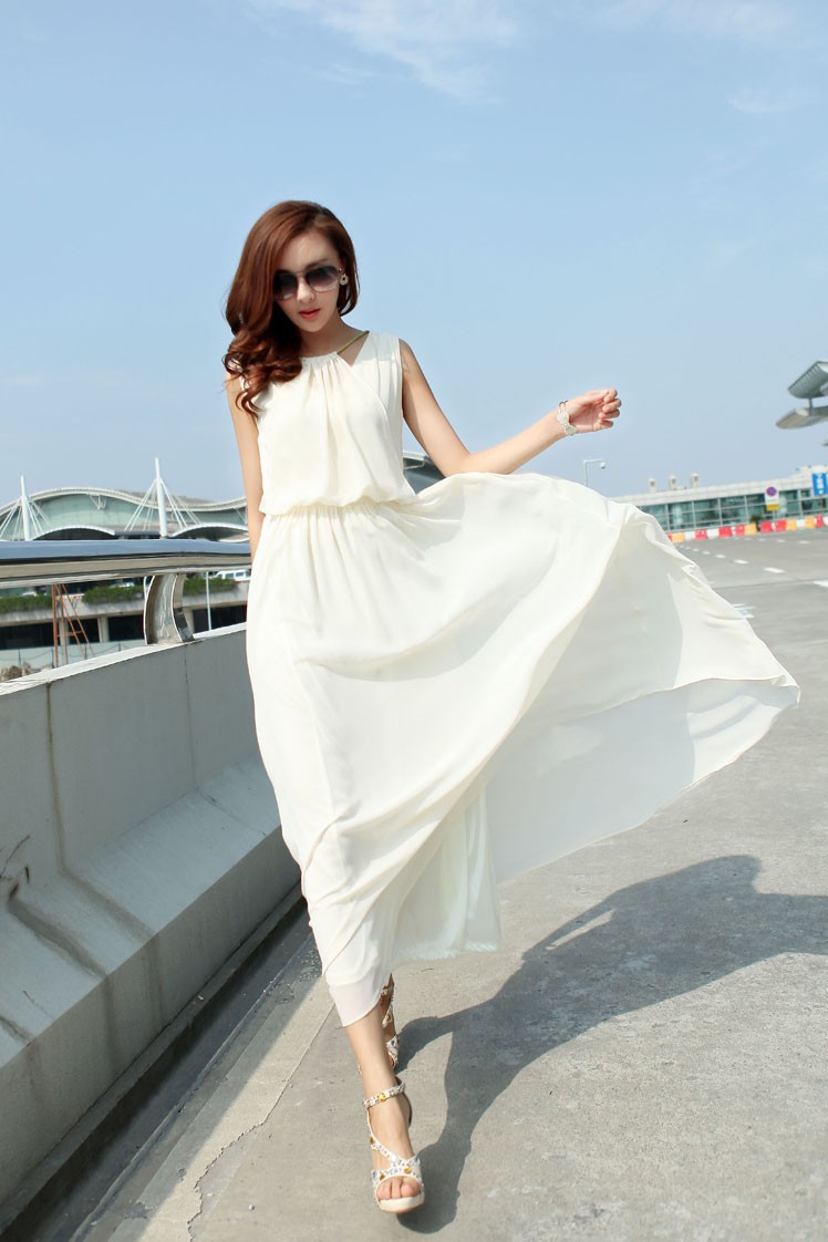 Neue 2014 frauen sommer kleider Sommer dnnen sleeveless weien unkonventionellen kleid Oansatz chiffon maxi sexy strand kleid neuheit kleider