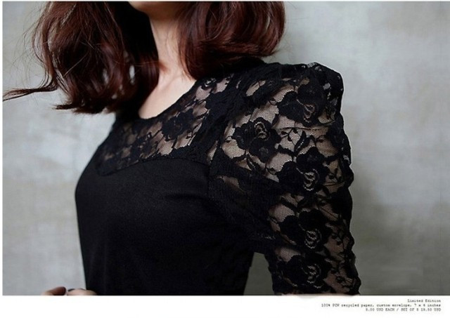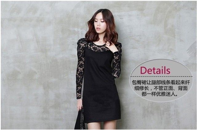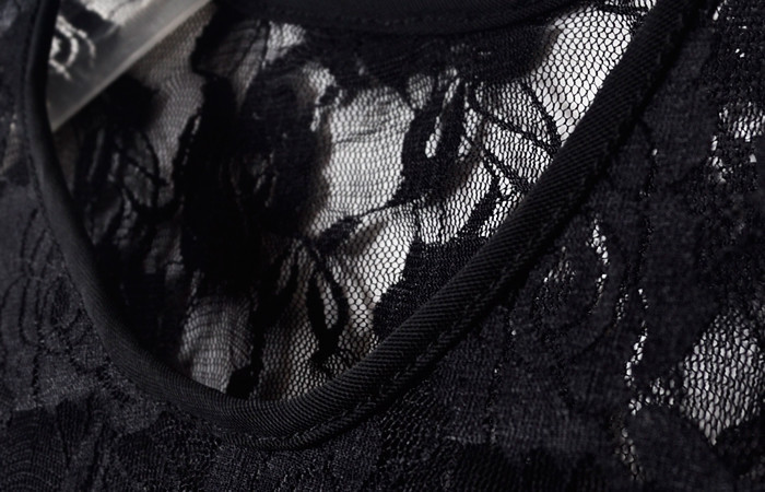 Plus Gre Frauen Kleidung Schwarz Sexy Damen Floral vestidos Spitze Dnnes Kleid Langarm Bodycon Minikleid Tropfen-verschiffen