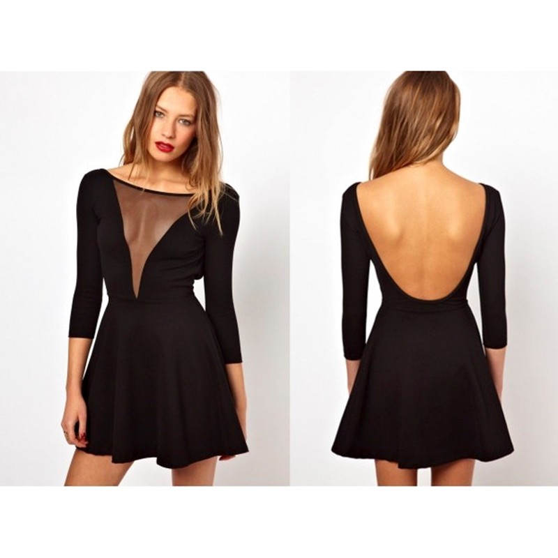 Sexy & Club frauen mini nettes kleid fit und flare aushöhlen o-ansatz dame herbst frühling kleid HFF736