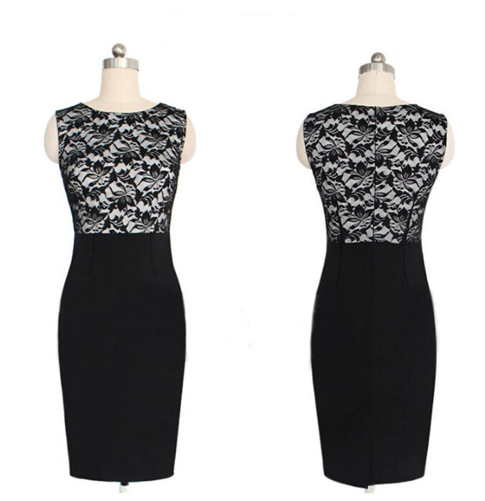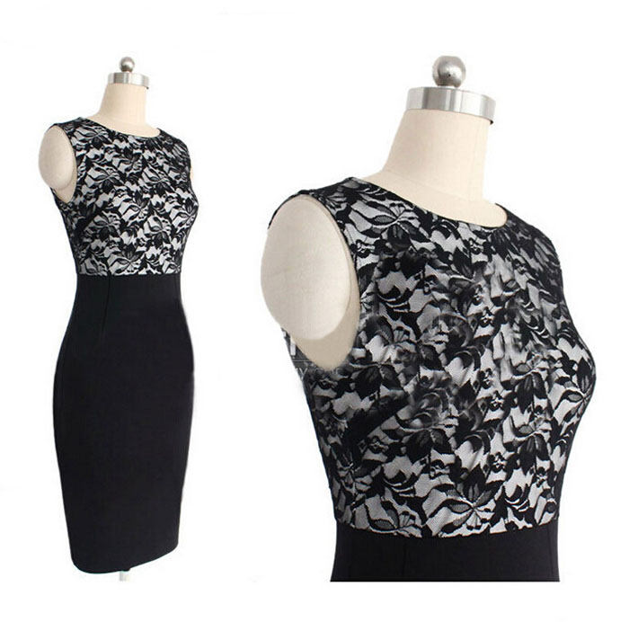 Sommer Frauen kleid Polyester Spitze mdchen Dnne Spitze Sexy Bodycon Knielanges Sleeveless Cocktail Party Bleistift Kleid weibliche kleidung
