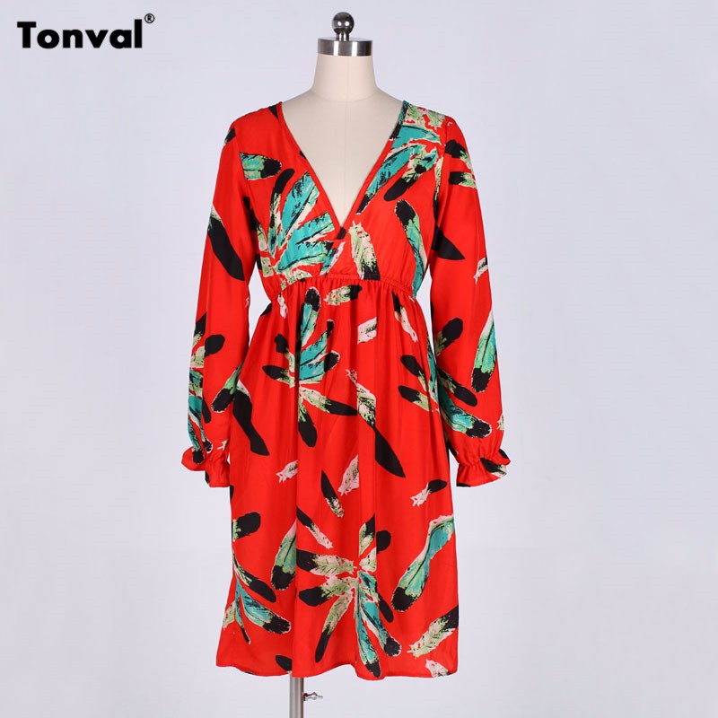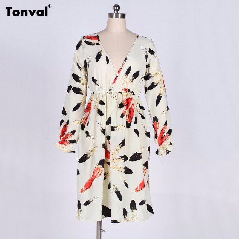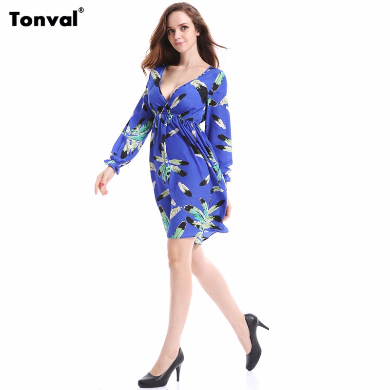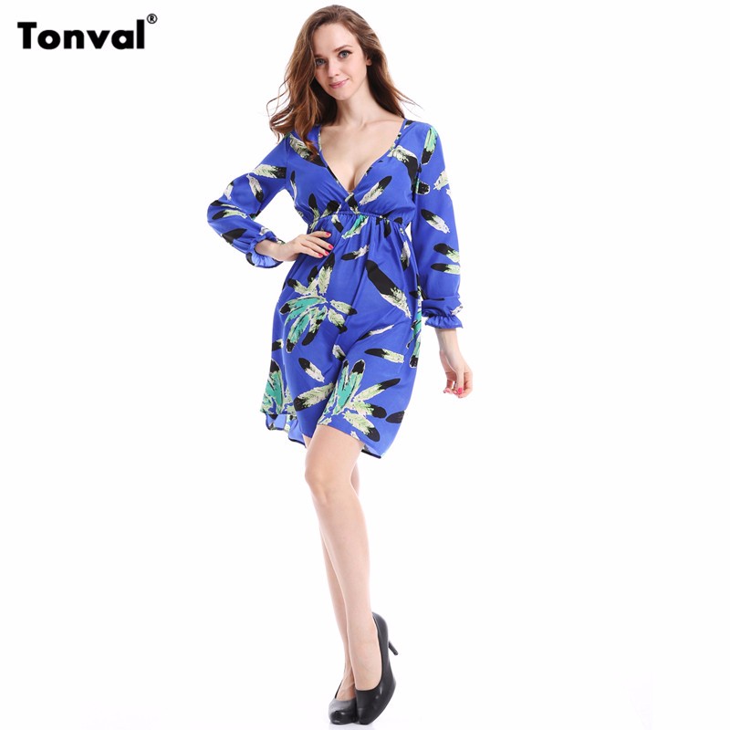 Tonval 5XL 6XL Plus Gre Frauen Kleidung Kleid 2016 Sommer Langarm Blumendruck Elegante Chiffon Sexy Kleider