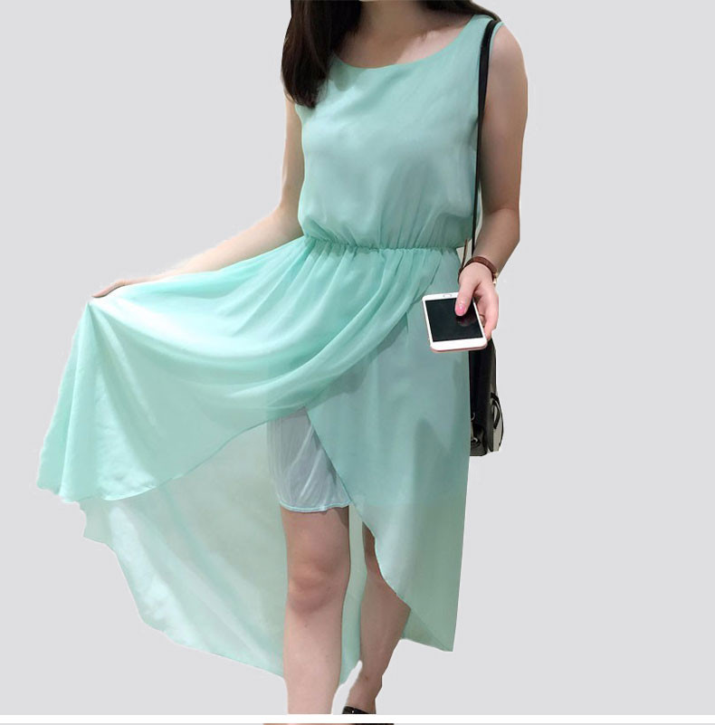 XXL Neue Sommer 2016 Damen Lange Chiffon-Hohe Sexy Kleid Mode Mintgrn/Leopard Sommer Kleid Casual marke Kleider D46513