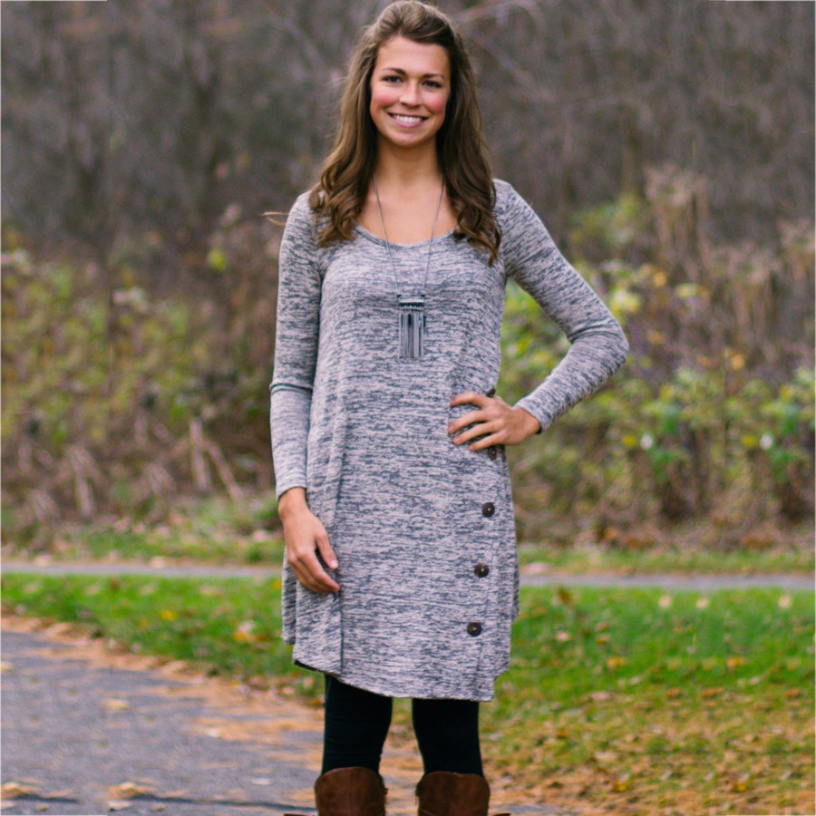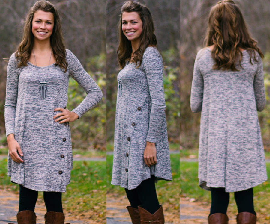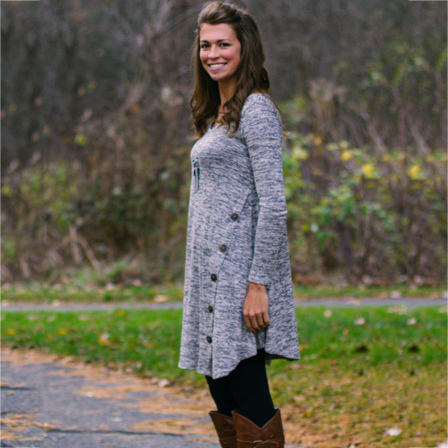 YI-NOKI sexy frauen herbst und winter unregelmigen Kleid mode lssig einfarbig Langhlse Dnnen plus gre Kleid