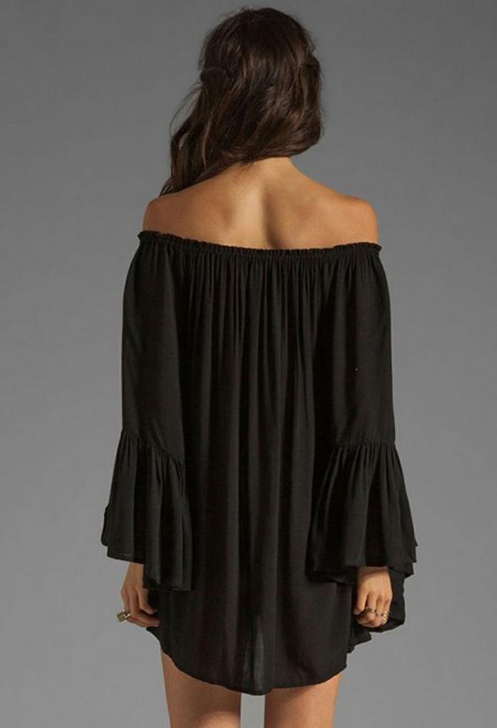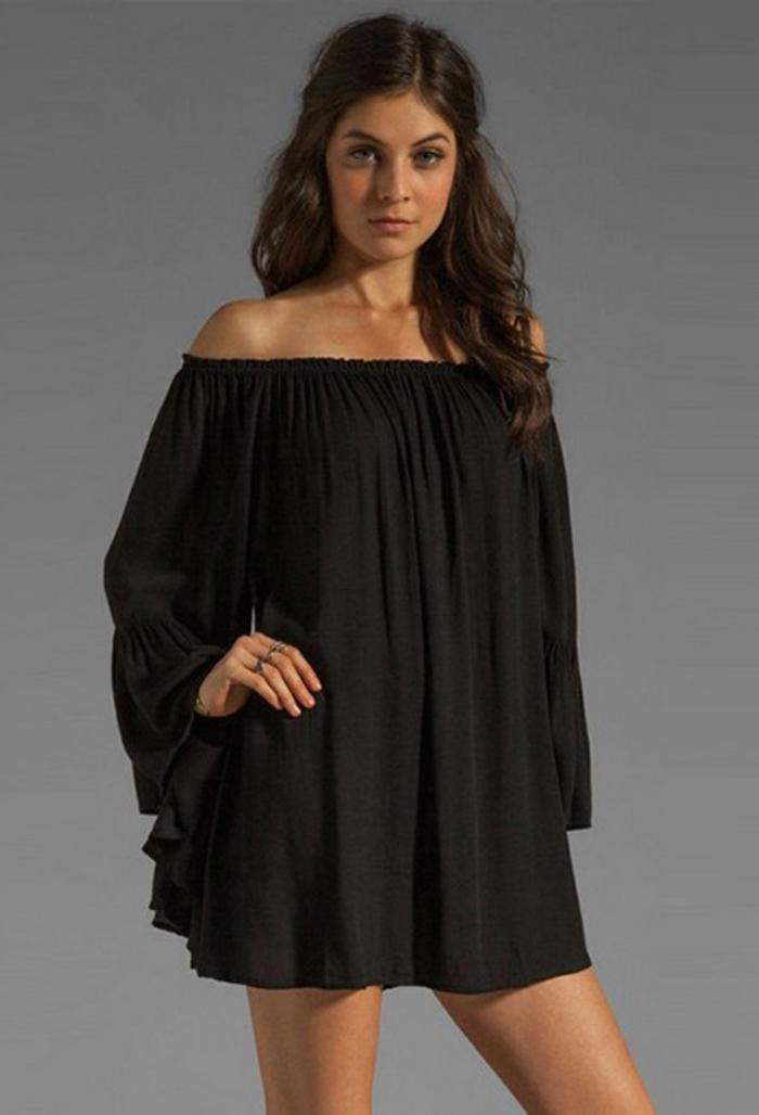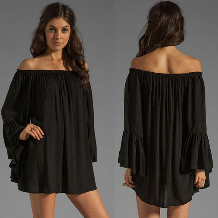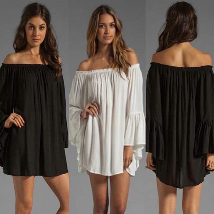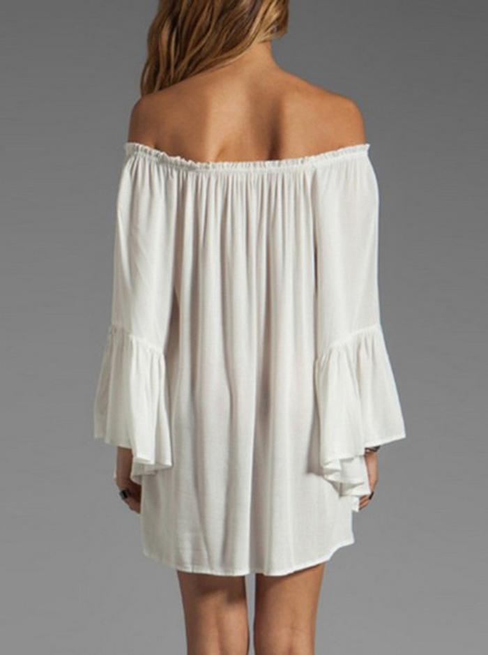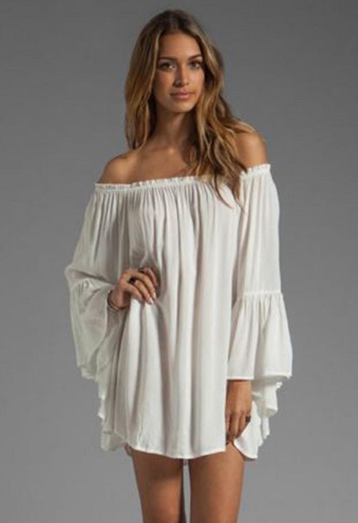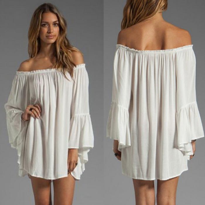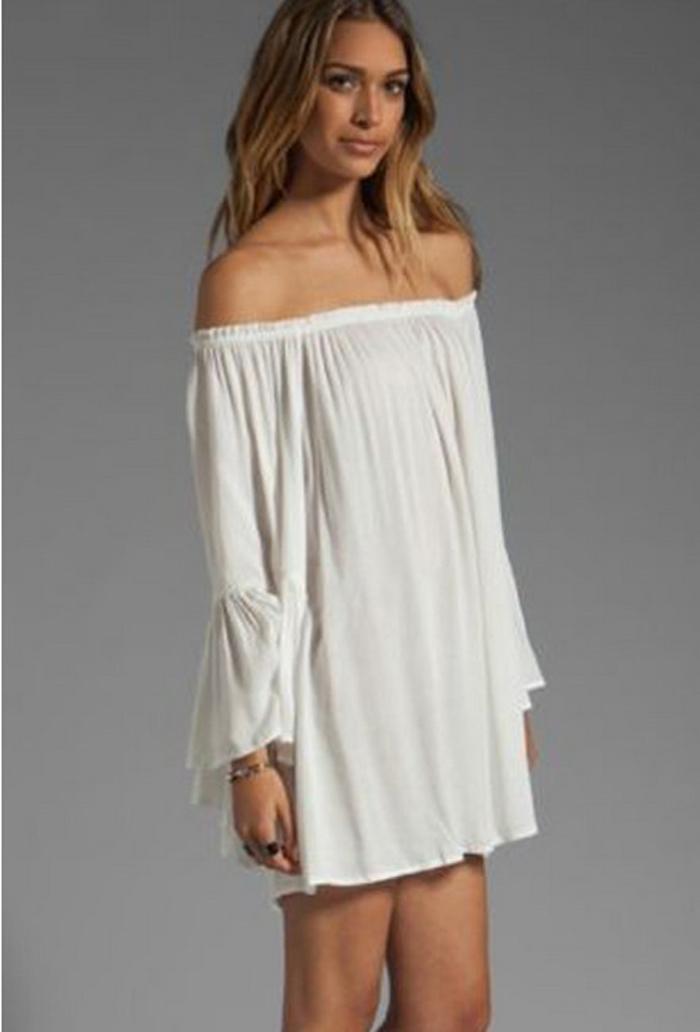 2015 heißer! sommer Frauen Kleid Casual 1 STÜCKE Frauen Boho Solid Rüschenärmeln Weg Kleid Sexy & Hot Strand Mädchen kleid