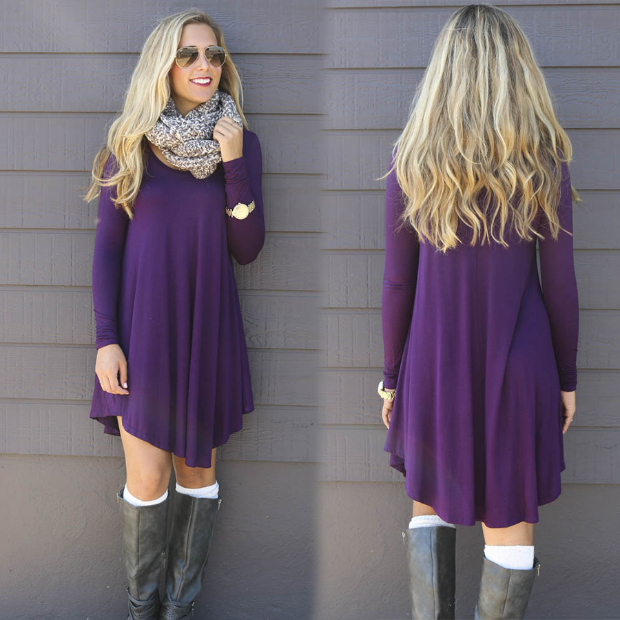 2016 mode frauen Kleider Sexy Vestidos Robe Hei Langarm Casual Kurzes Kleid 4 Farben Lose Billig Heier Verkauf kleider