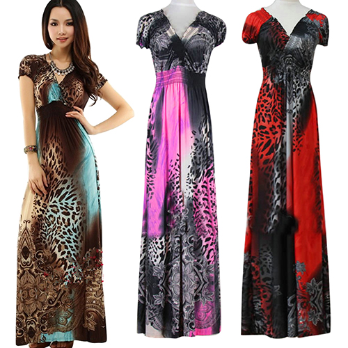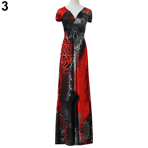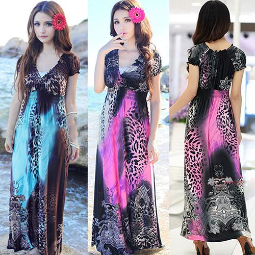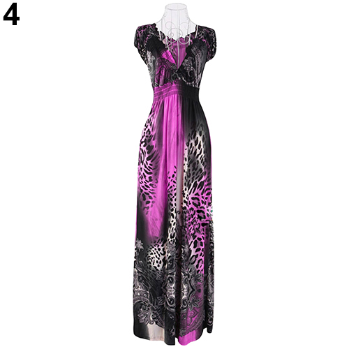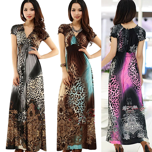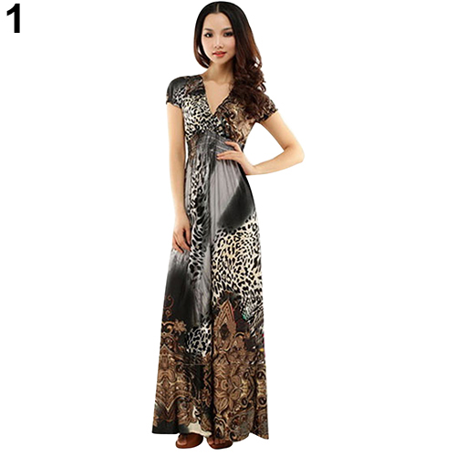 frauen Sommer Sexy Strand Böhmisches Maxi Kleid Leopard Gezogen Abend Party Rock