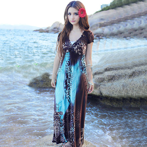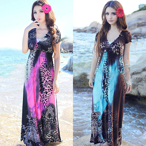 2016 neue Frauen Sommer Sexy Strand Bhmisches Maxi Kleid Leopard Gezogen Abendgesellschaft Dresse