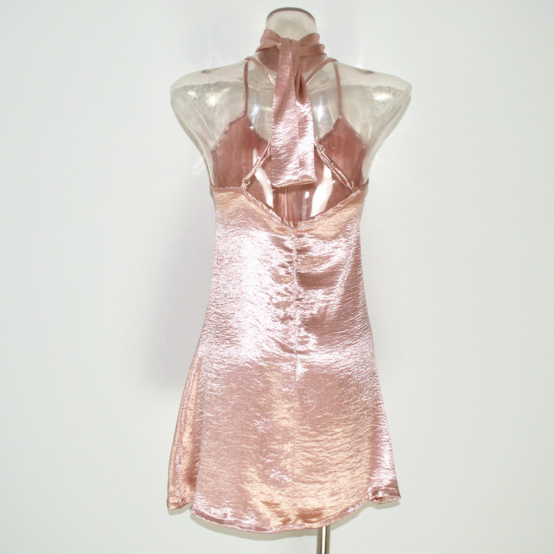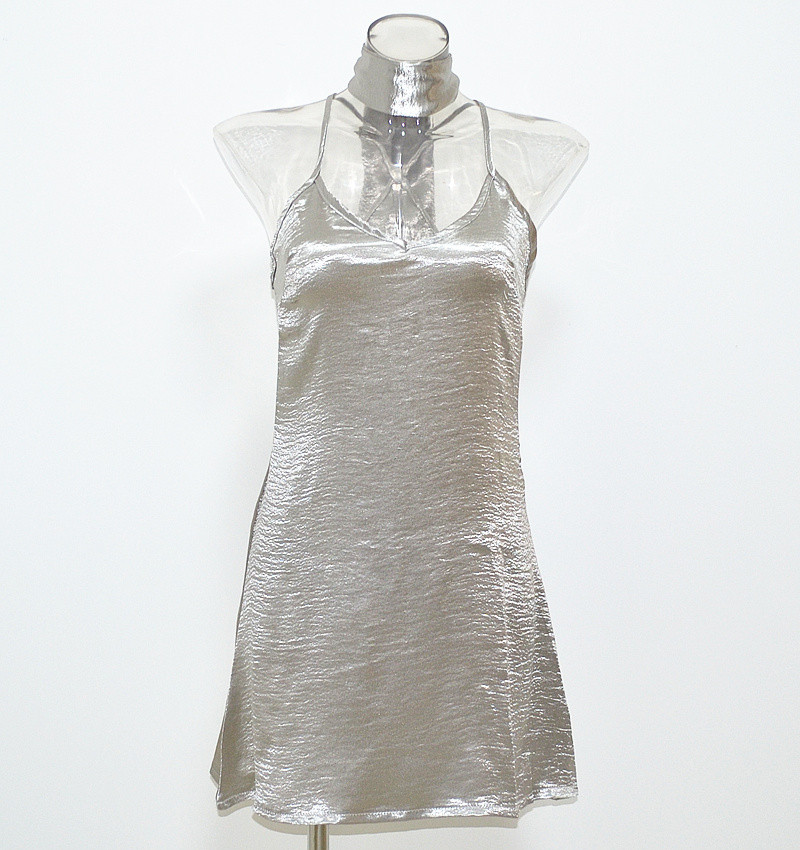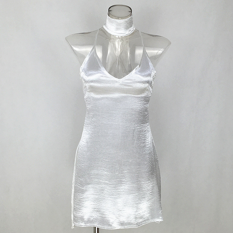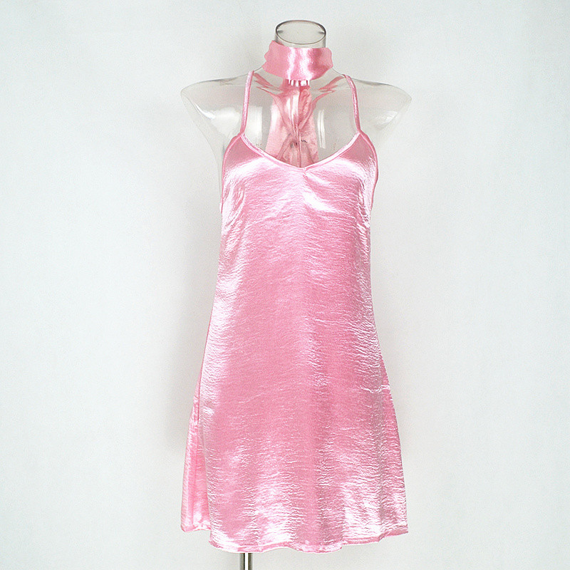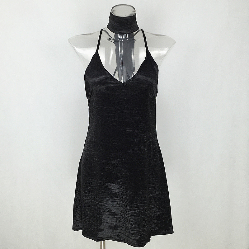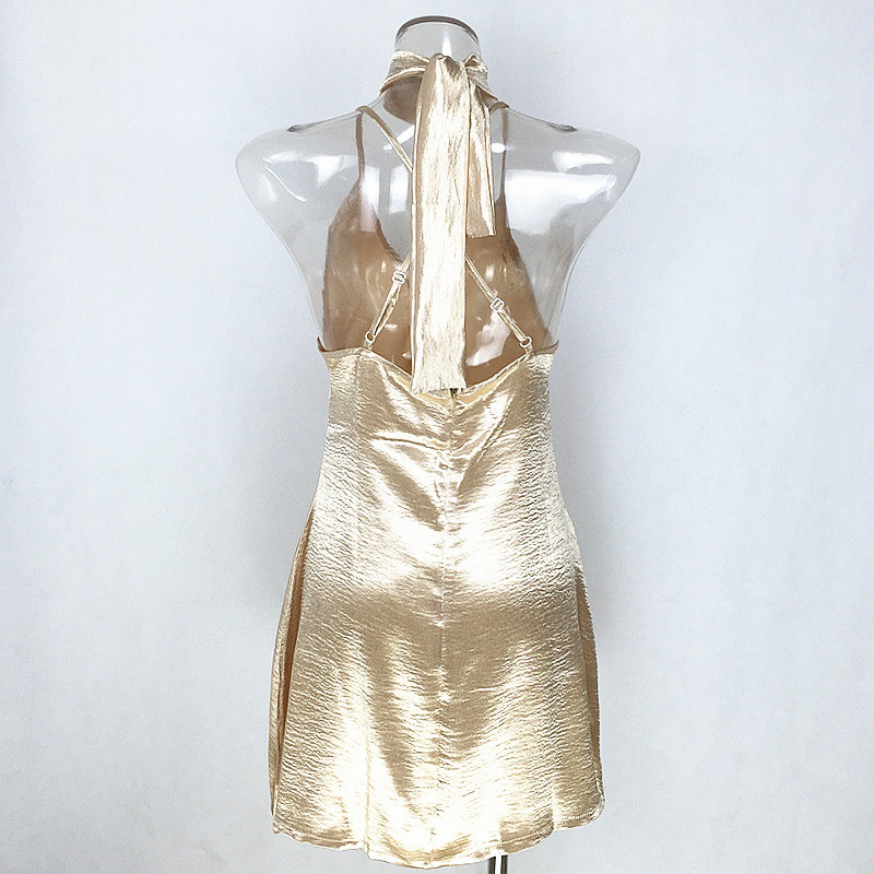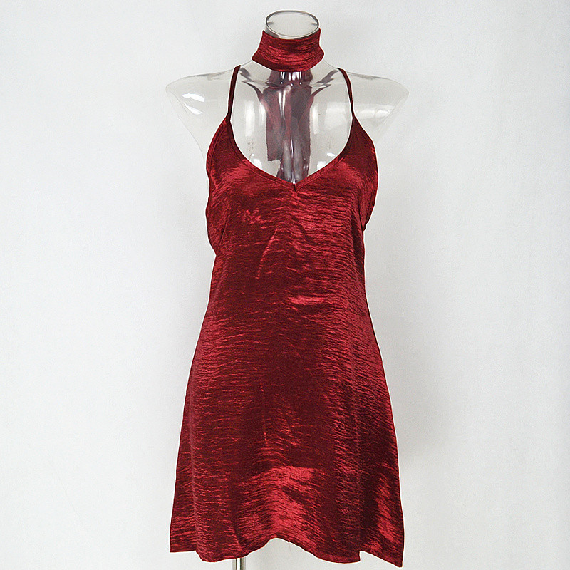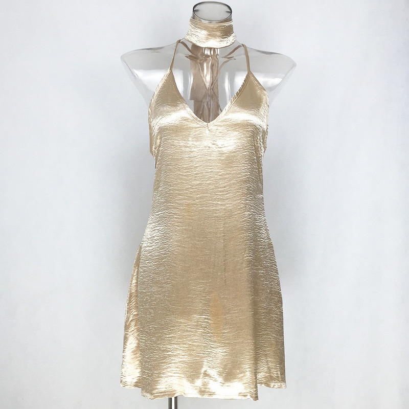 2016 sommer Frauen Sexy Tiefem V-ausschnitt Zurck Criss Cross halsband Hals Satin Slip Kleid A-Line Shinning Party Kleider Vestidos