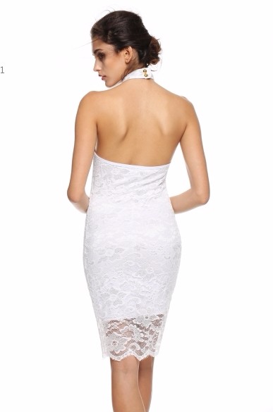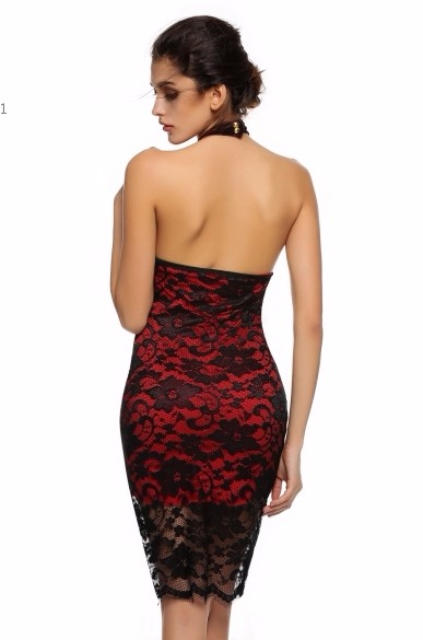 2016 sommer Sexy Floral Spitzenkleid Backless Liebsten Neckholder Schulterfrei Hohl Schlank Bodycon Kleid Vestido M-XL