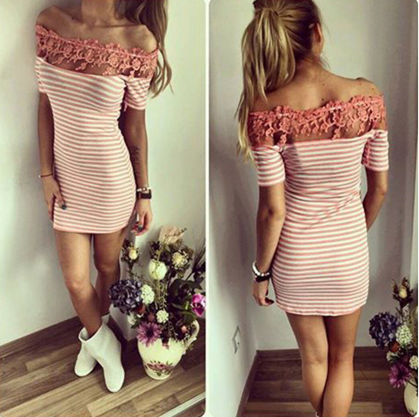 2016 sommerkleid frauen Lace Sexy off schulter Slash neck Gestreiften kleid partei bodycon kleider vestidos ukraine plus gre
