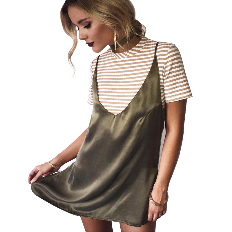 DS298 Frauen Tiefe V Halsband Hals Satin Slip Kleid Sexy Strappy Sleeveless A-Line Sommer Abendgesellschaft Kleid Sommerkleid Club Tragen neue