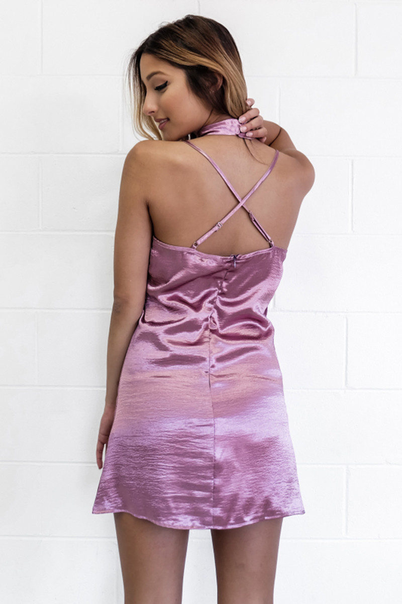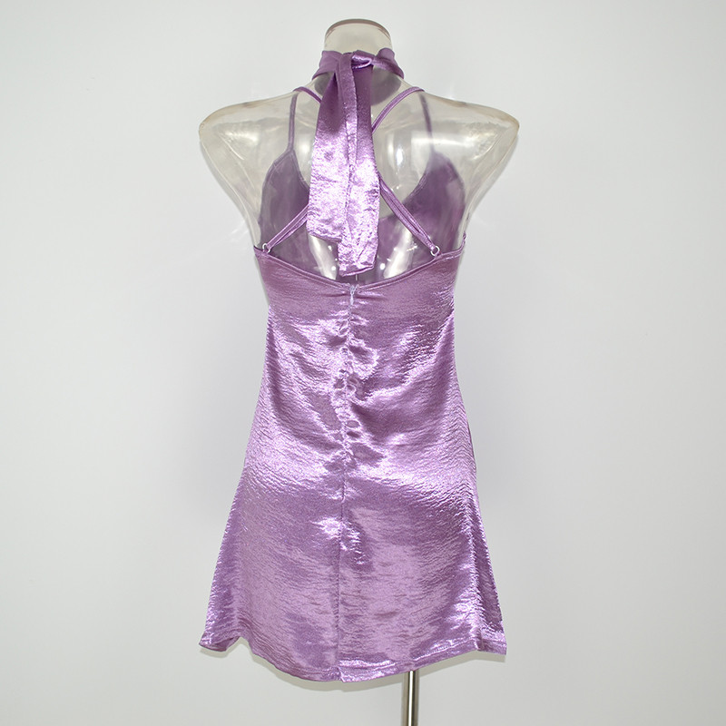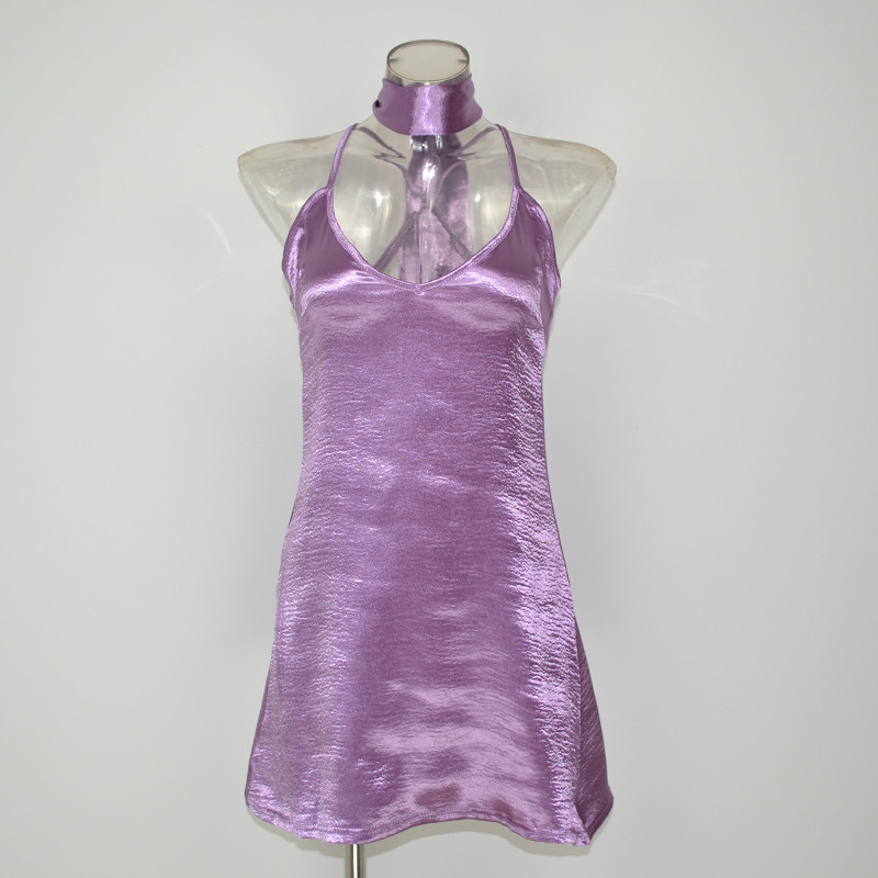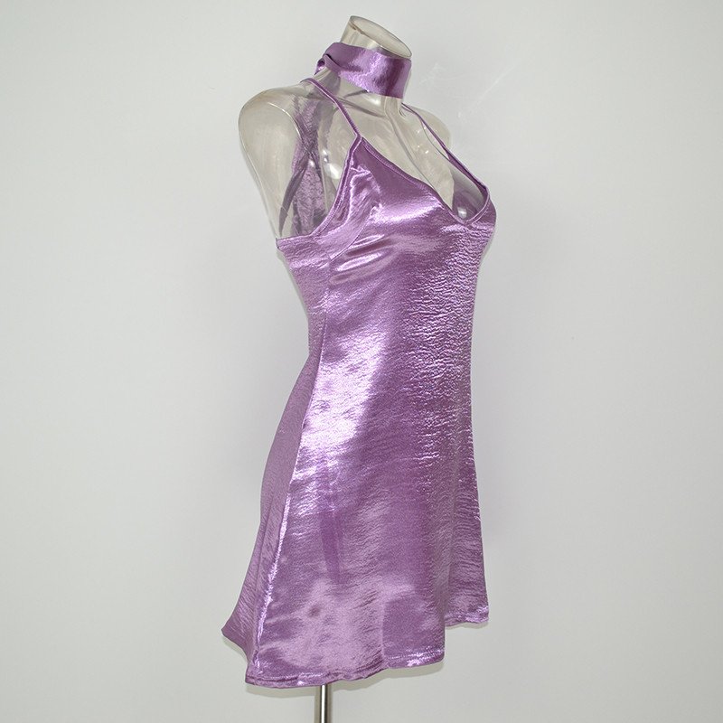DS302 Lila Sleeveless Sexy V-ausschnitt Zurck Criss Cross Halsband Hals Frauen Seidige Satin Slip Kleid Lssige Party Kleider Vestidos