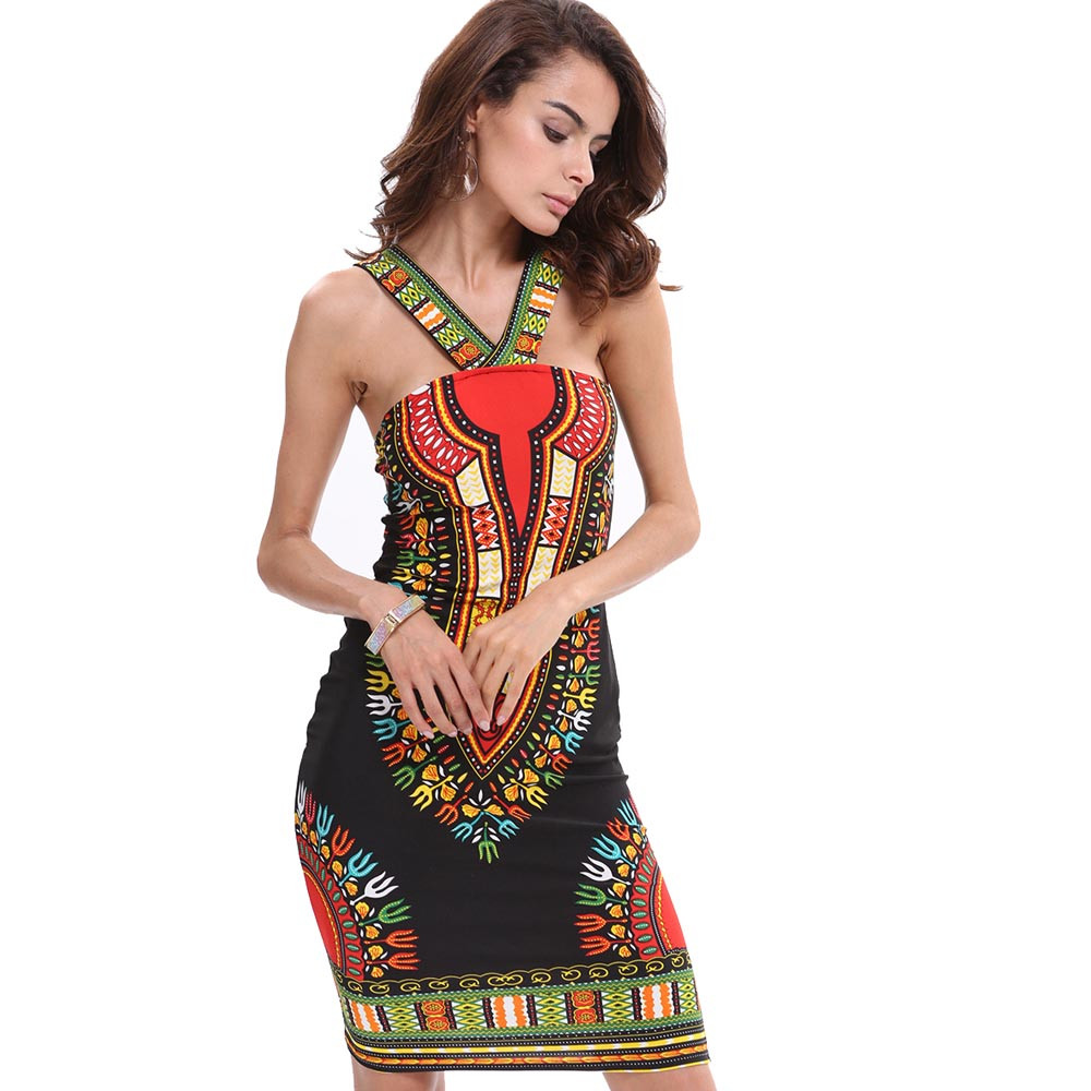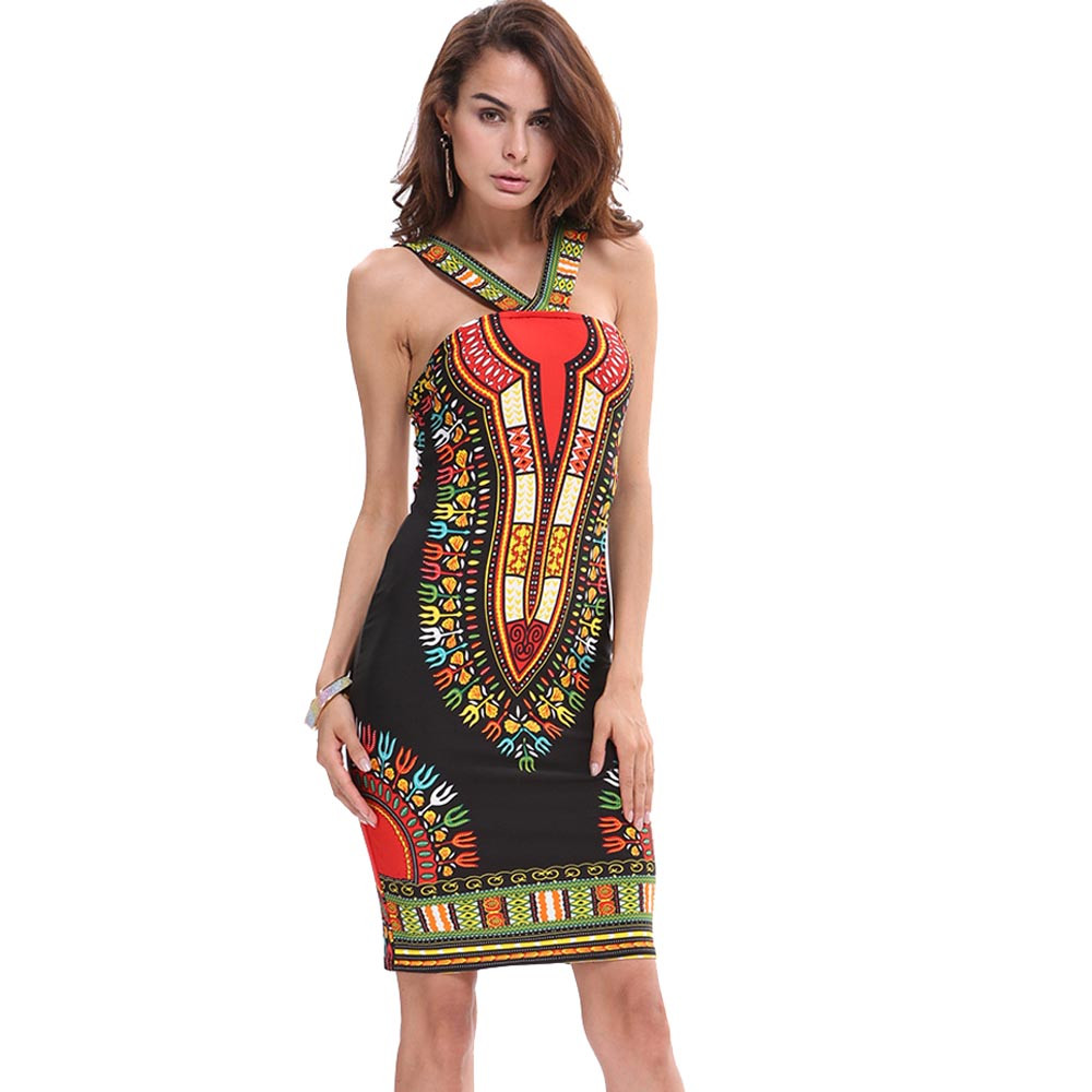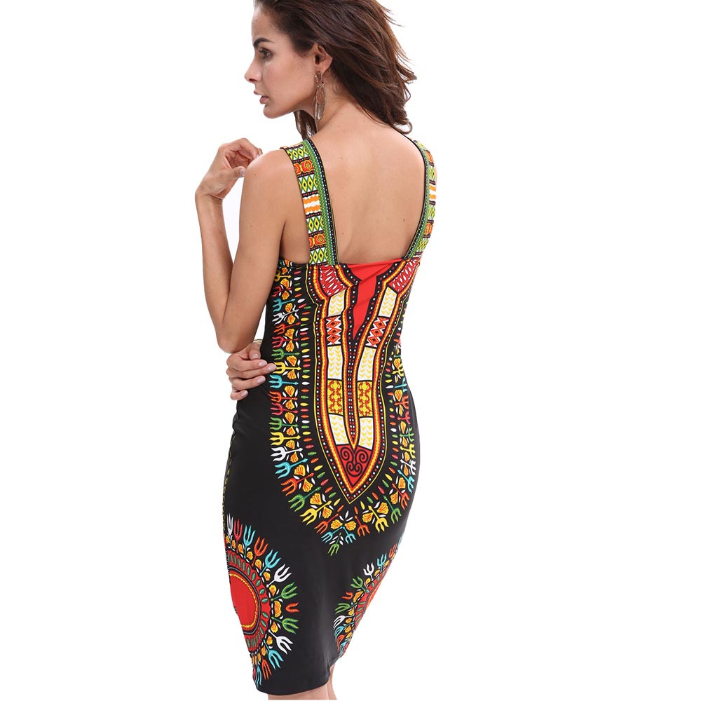 frauen Traditionelle Afrikanische Druck Dashiki Bodycon Sexy Ärmelloses Kleid