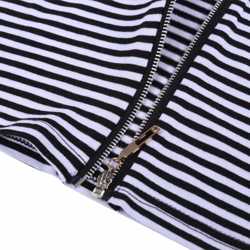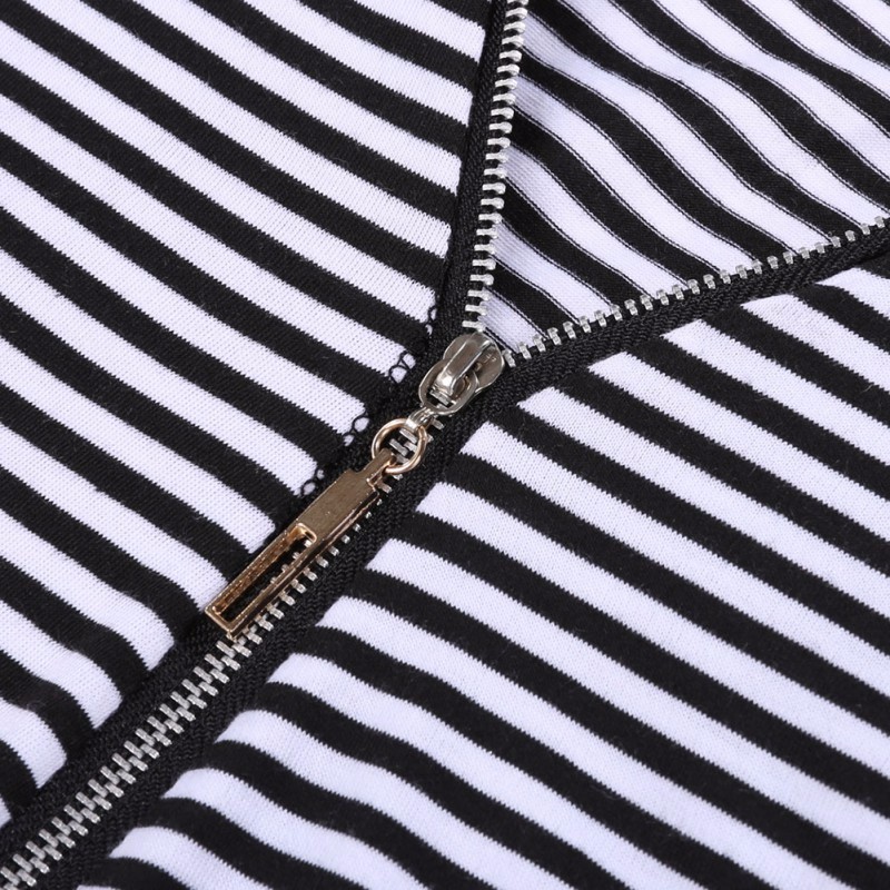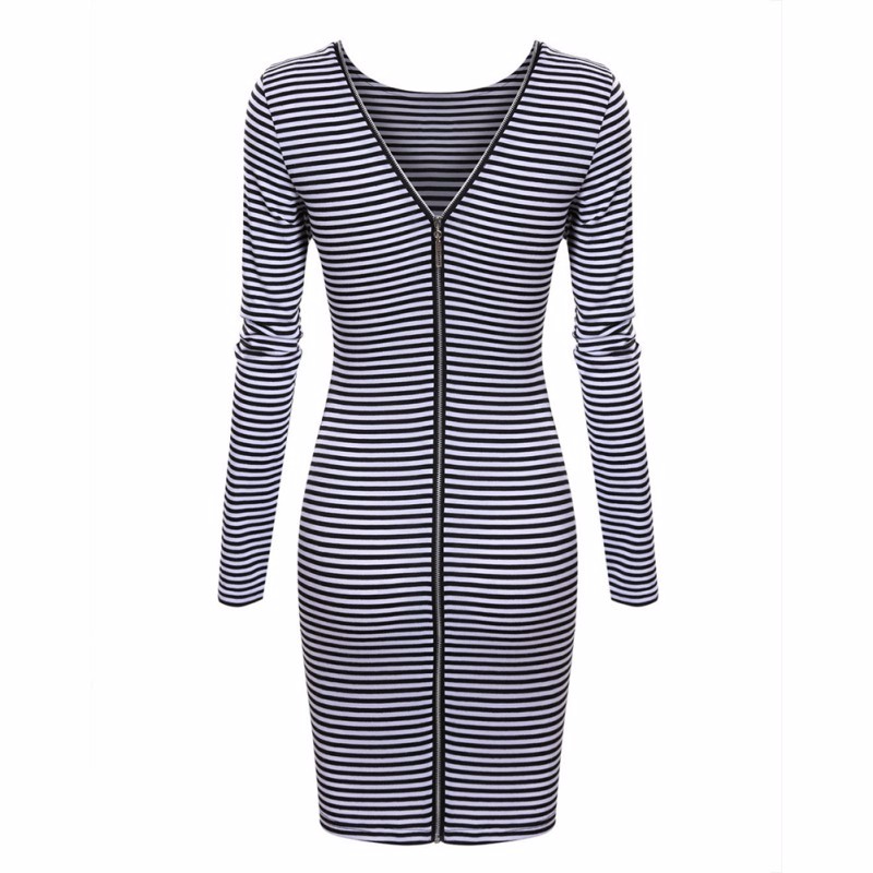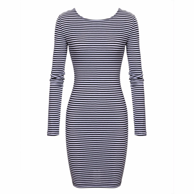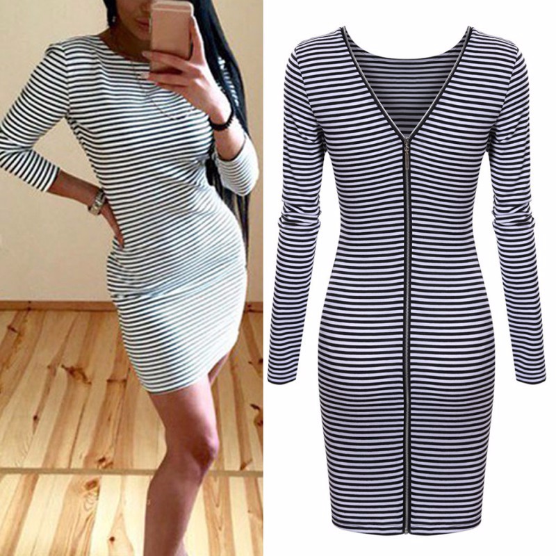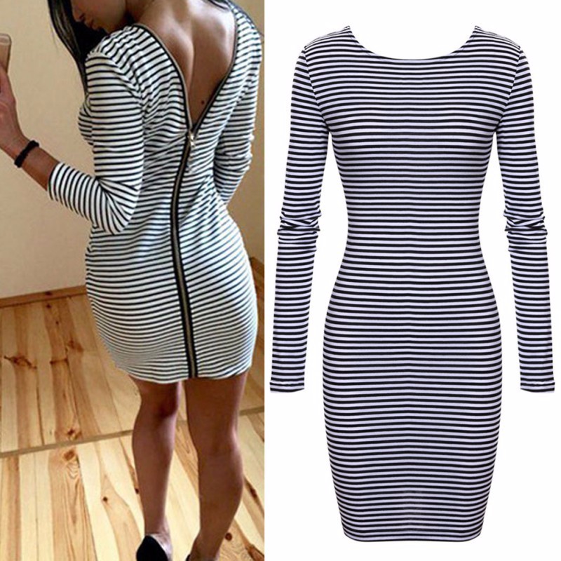 frauen Reizvolle Backless Kleider frauen Zurück Reißverschluss Gestreiften Kleid Long Sleeve Bleistift Bodycon Minikleid