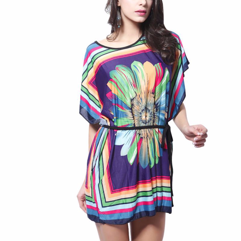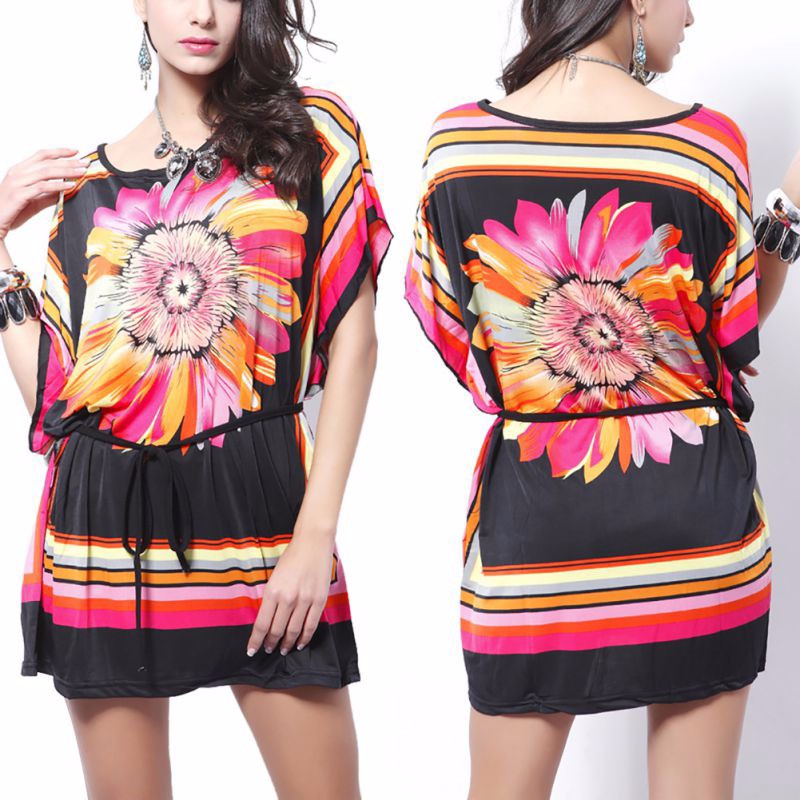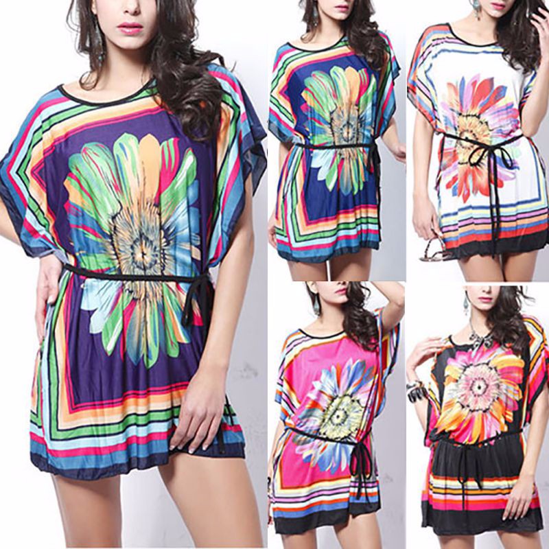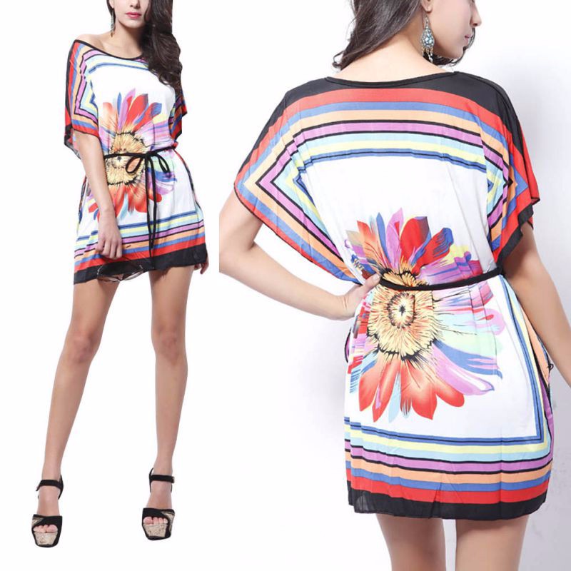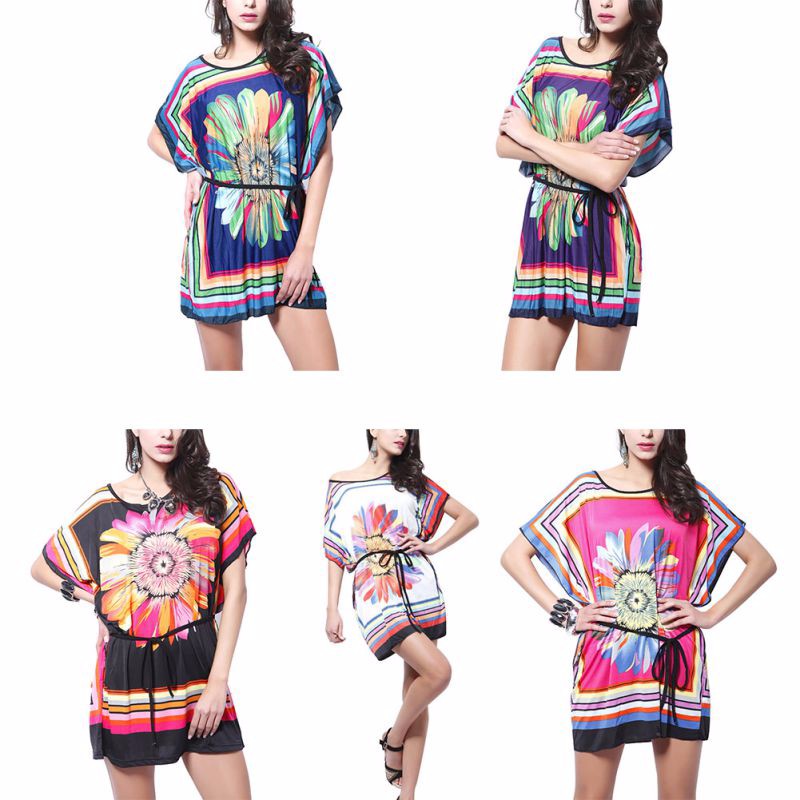 Frauen Sommer Kleid Blumendruck Sexy Strandkleid Lose Minikleider