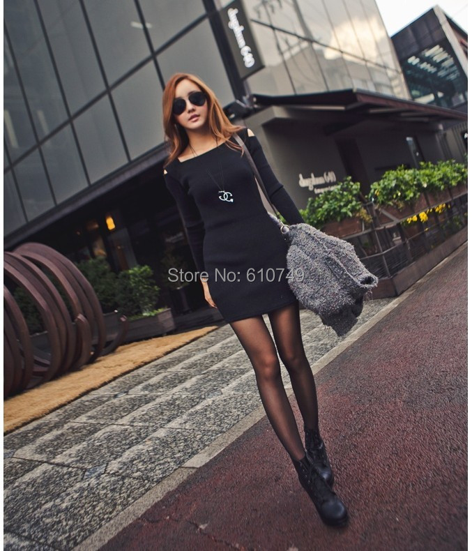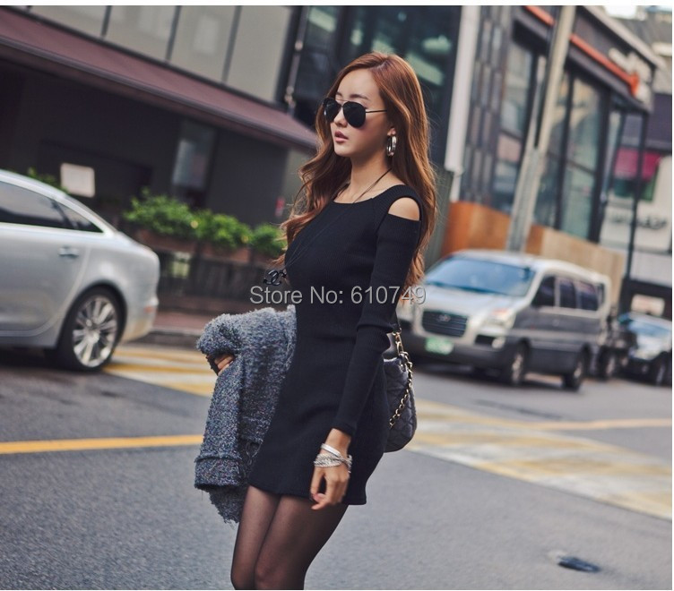 Gnstigste 2016 Neue Mode Heier Verkauf Casual Mode Frauen Sexy Schulterfrei Pullover Mit Rundhalsausschnitt Langarm Schlank Knit Strickwaren kleid