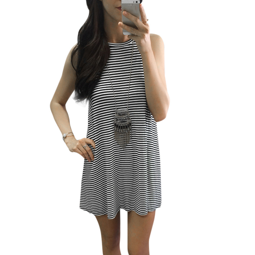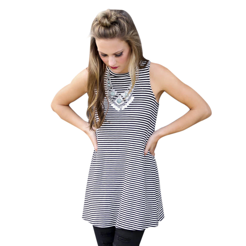 Grohandel und Einzelhandel Frauen Sommerkleider Mdchen Casual Streifen Rundhals Sleeveless Kleid Grundiert Strand Kleider Jimshop