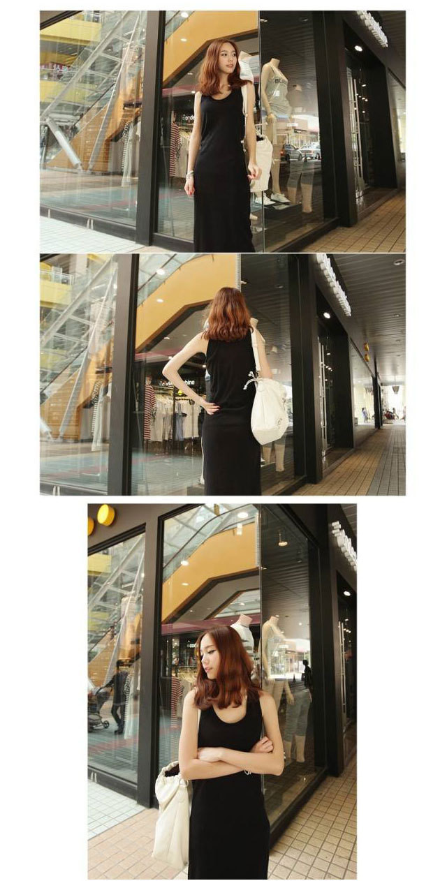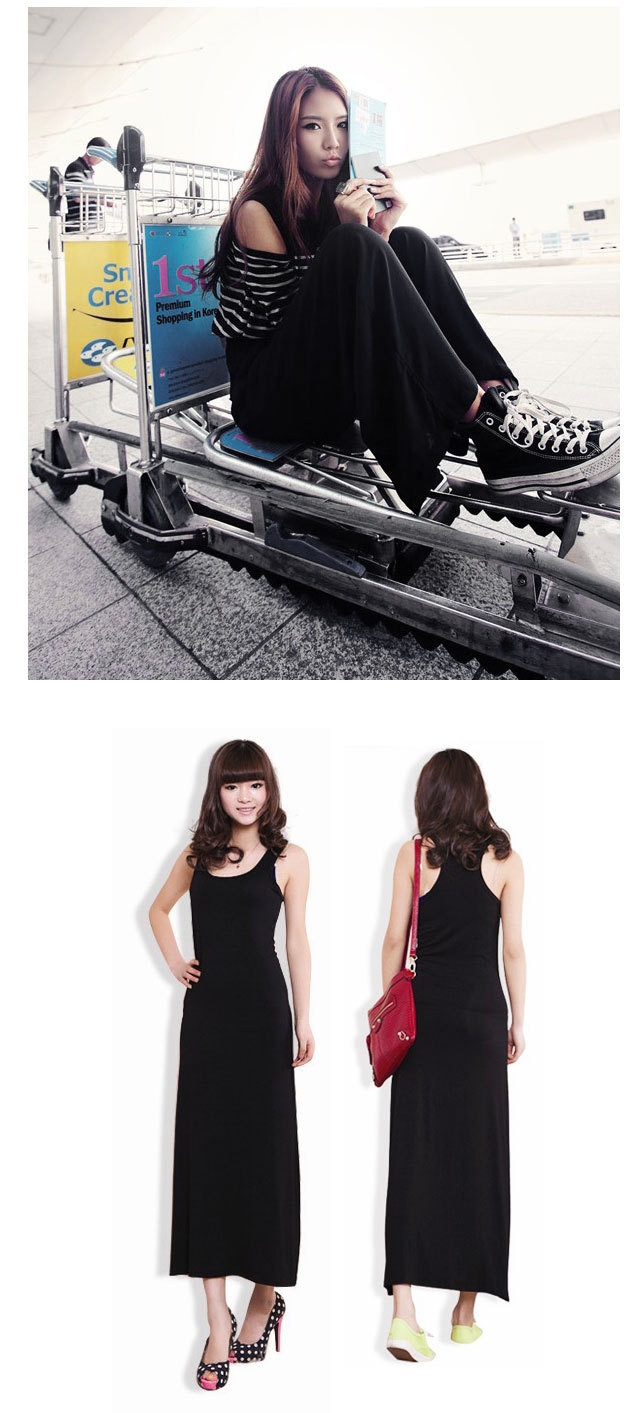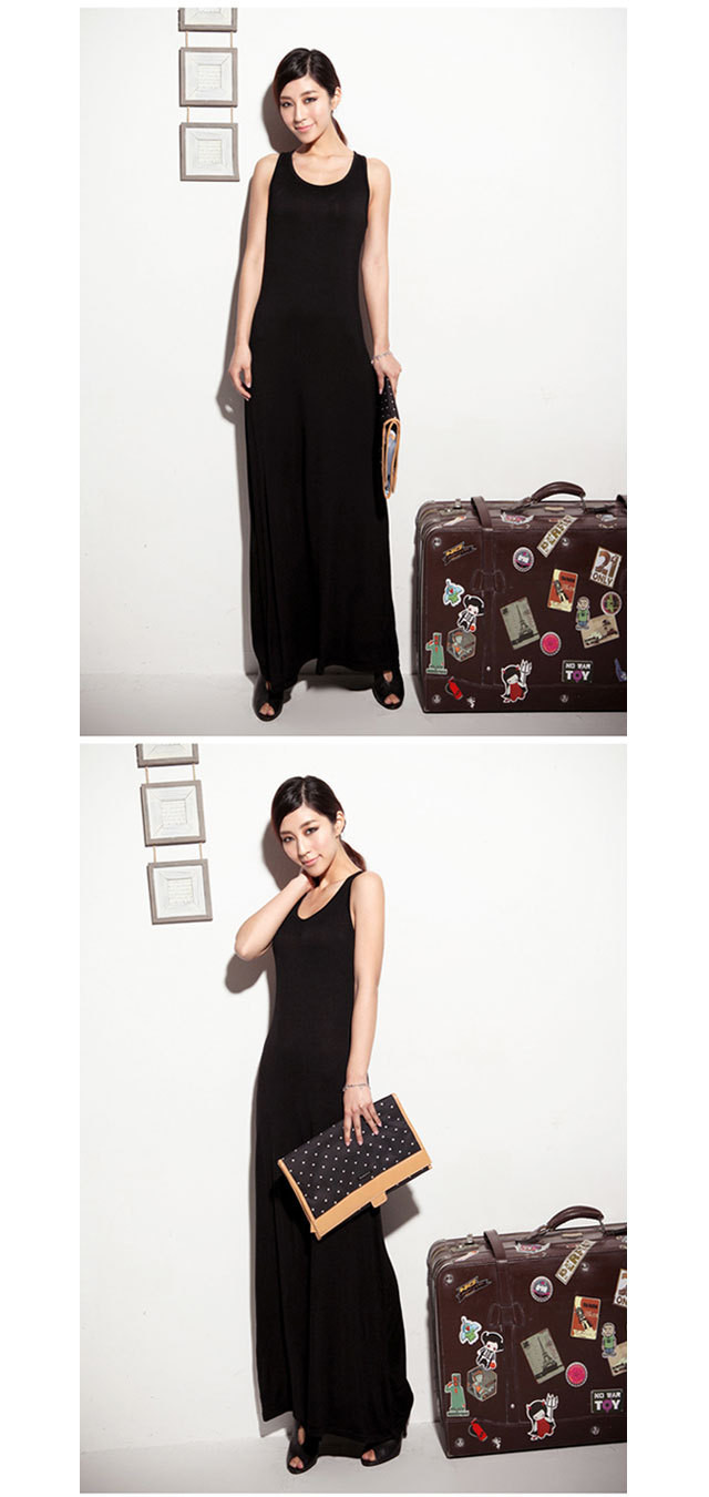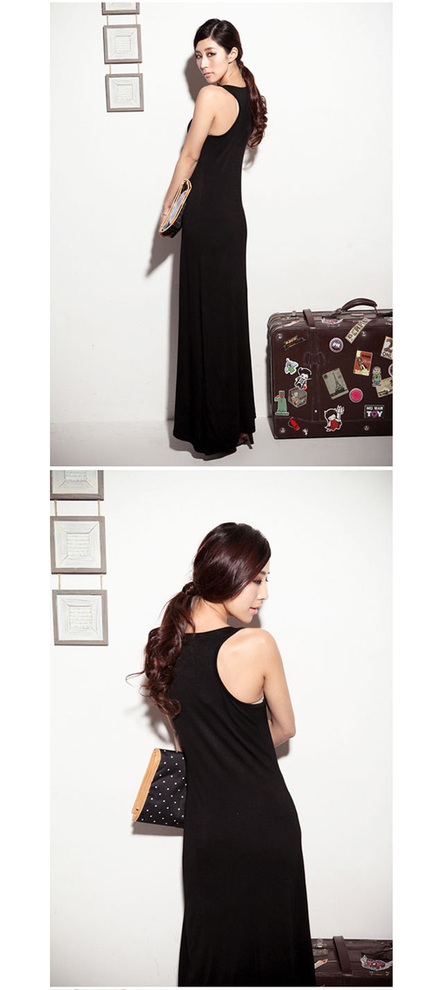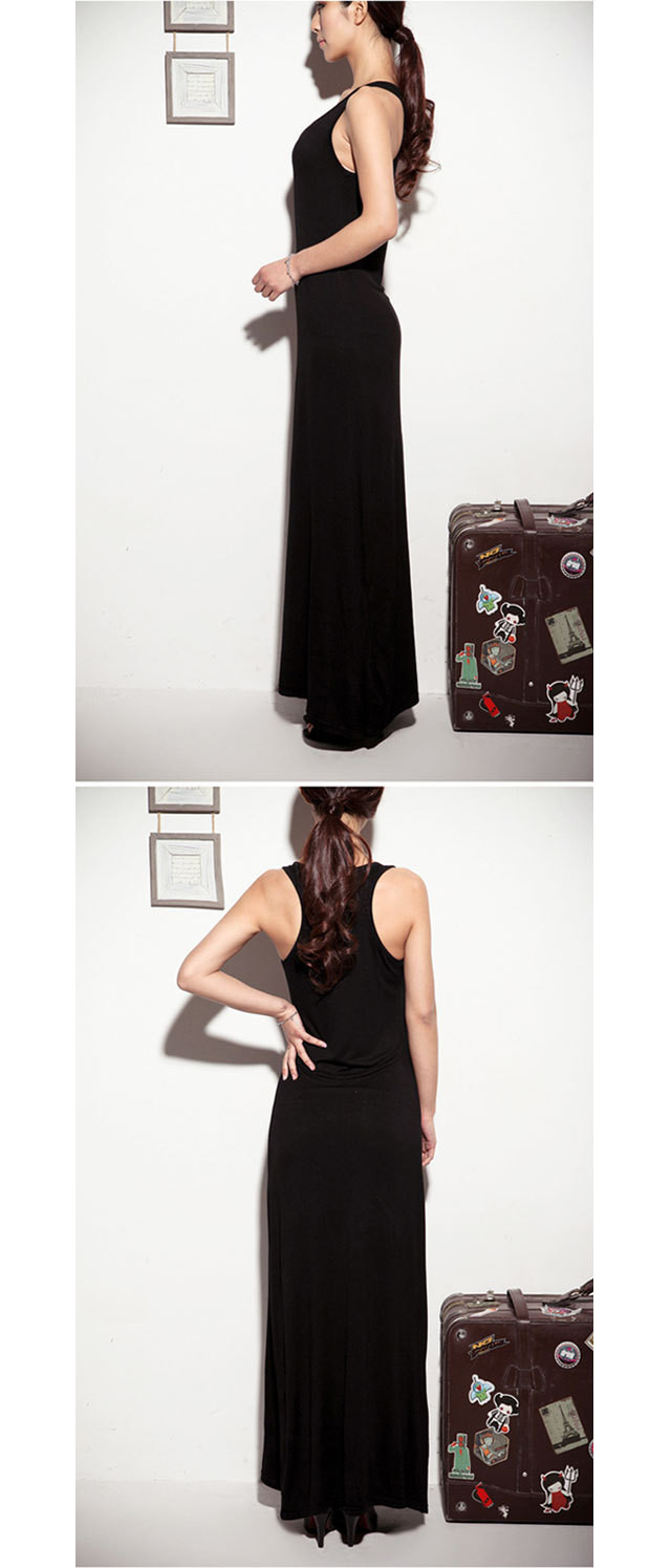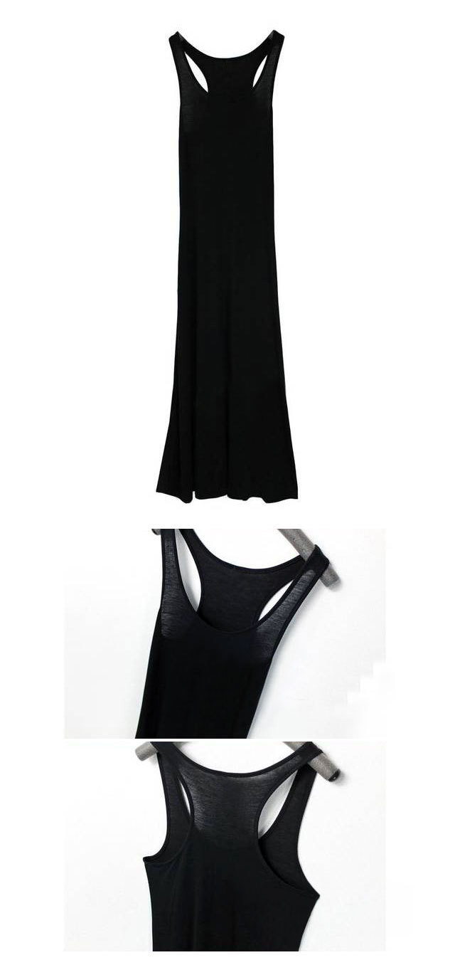 Heie Neue 2016 Sommer Frauen Damen Casual O Hals Baumwolle Sleeveless schwarz Kleid Sexy Lange Racer Weste Tank Strand Maxi Kleid Gnstige Z1