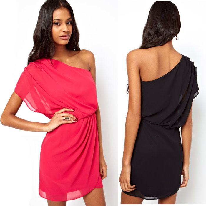 Jimshop 2016 1 STCK Frauen Sexy Oblique Trgerloses Gefaltetes Chiffon Kleid Dame-beilufiges Kleid