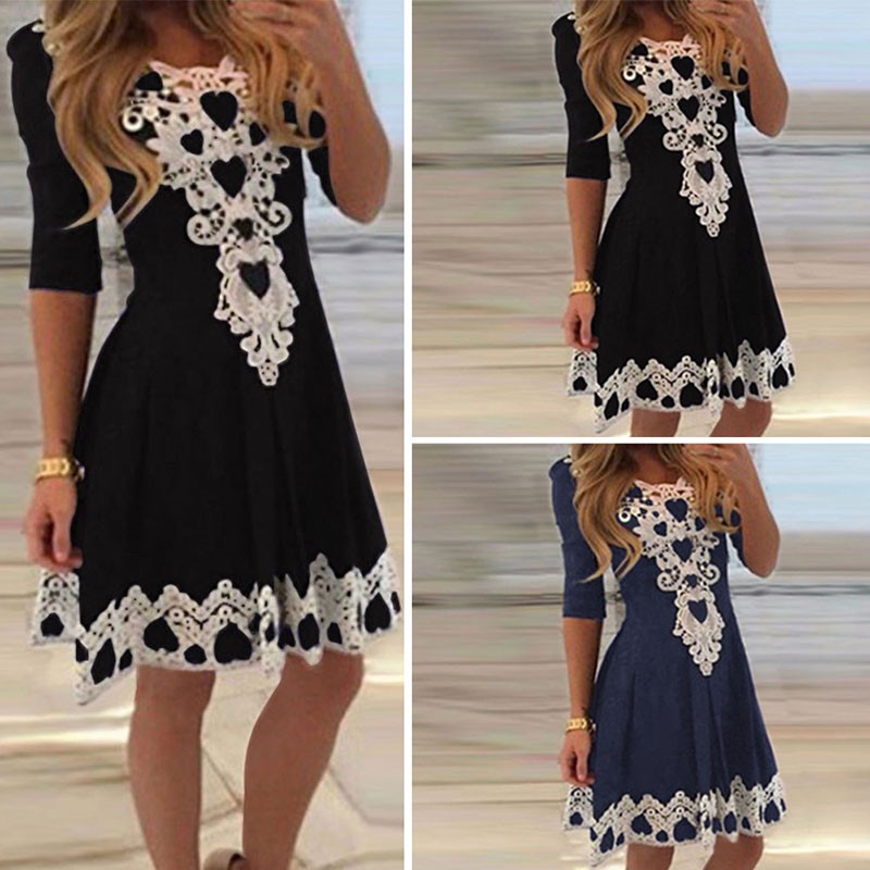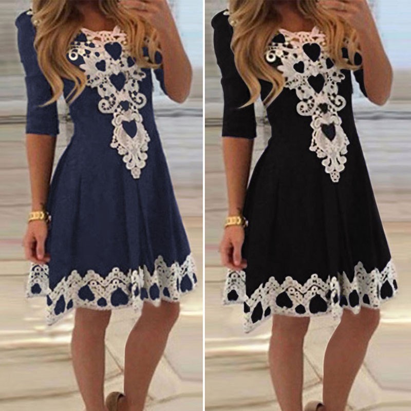 Mode Frauen Sexy Sommer Spitze Langarm Partei-abend-kleid Kurz