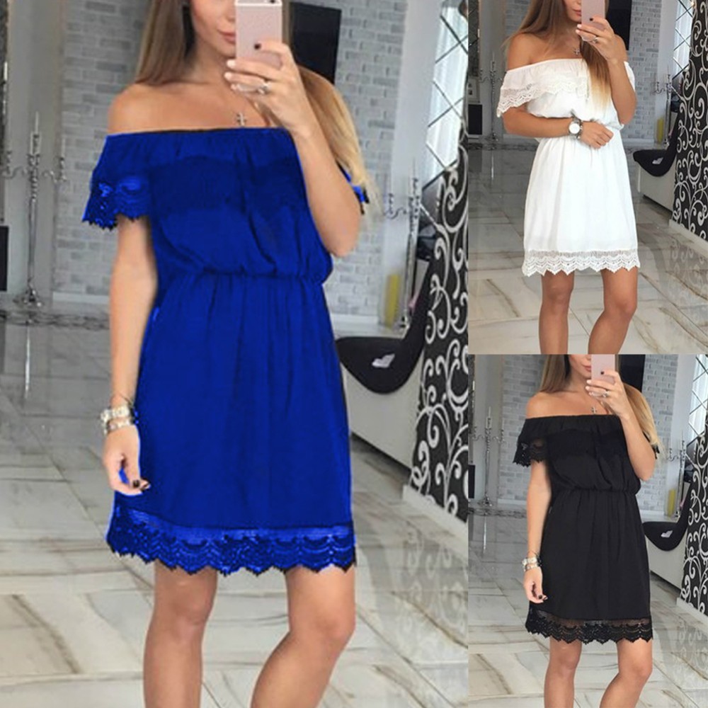 mode Sexy Frauen Weg Schulter Sommer Minikleid Damen Spitze Partei Beiläufige Kurze Hemd Kleid Bodycon vestido de verano