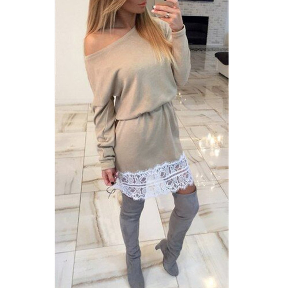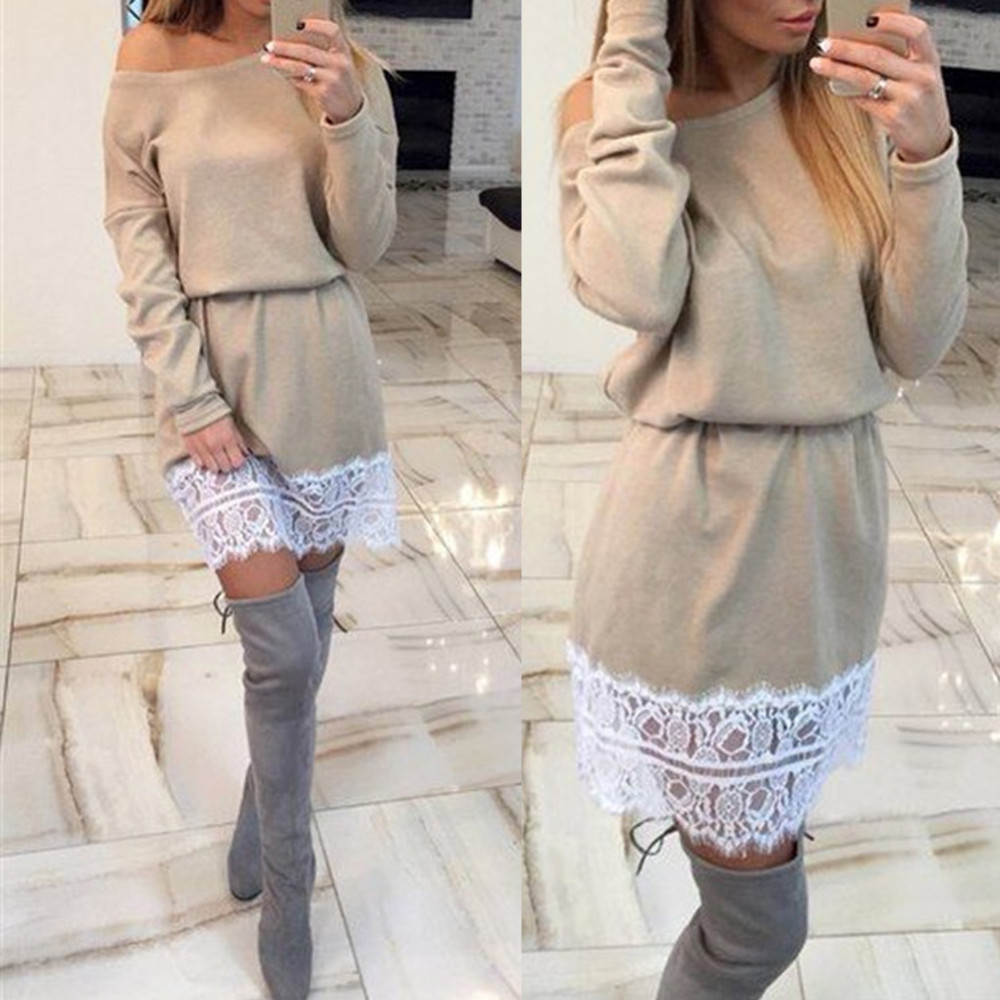 Neue 2016 Frauen Damen Sexy Schulterfrei Spitze Patchwork Nacht Club Party Kleider Casual Lose Kleid Tops Z2