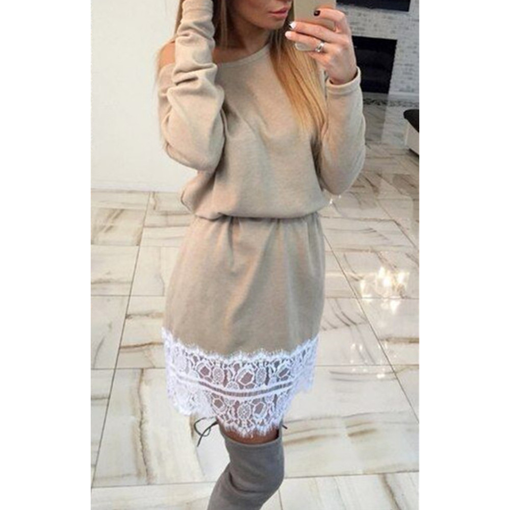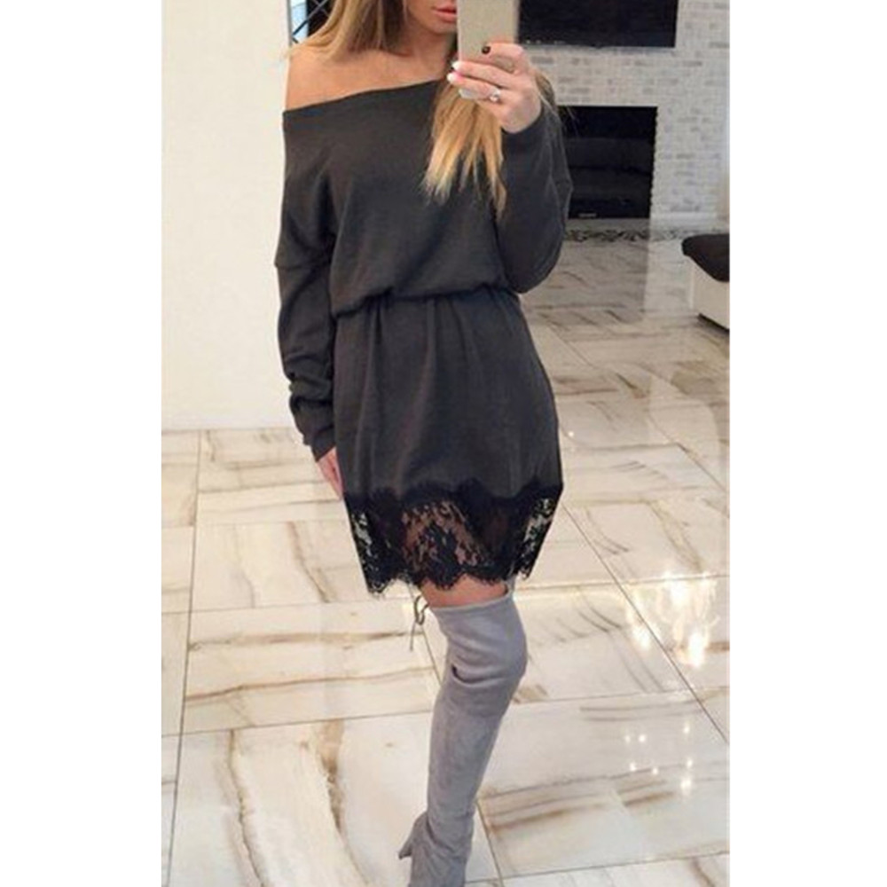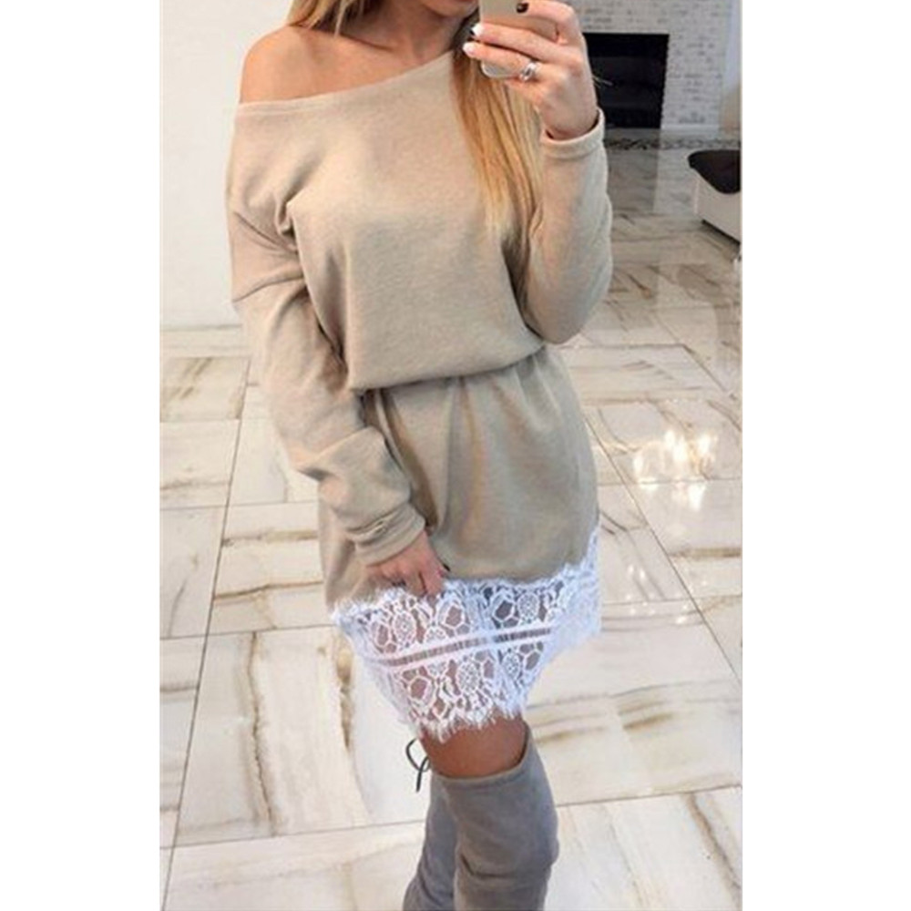 Neue 2016 Frauen Damen Sexy Schulterfrei Spitze Patchwork Nachtclub Party Kleider Casual lose Kleid Tops