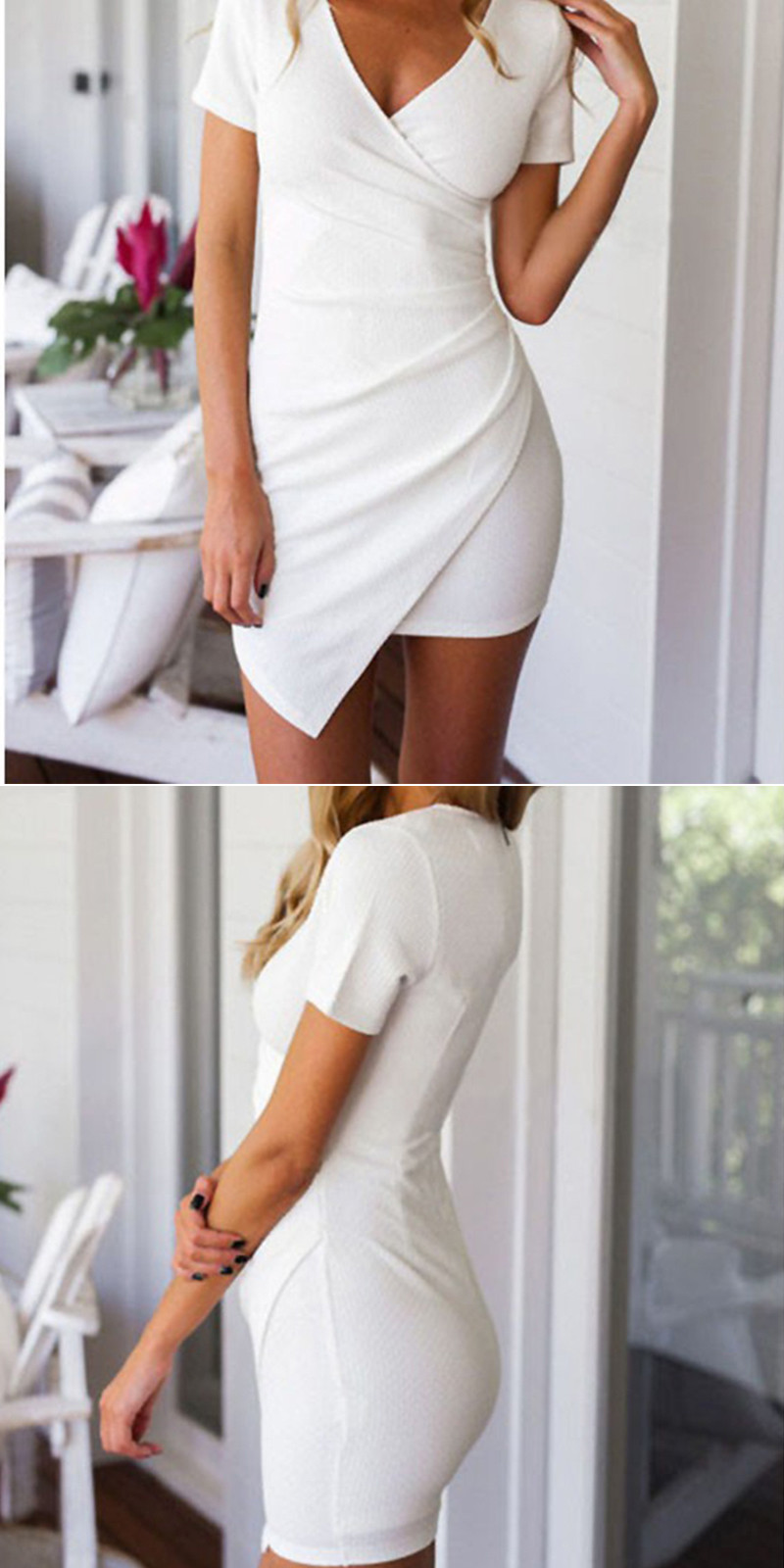 Neue Ankunft 2016 Sommer Frauen sexy tiefem V-Ausschnitt Schlank Stretch Asymmetrie Bleistift Kleider Kurzarm Mini Nacht Club Party Kleid