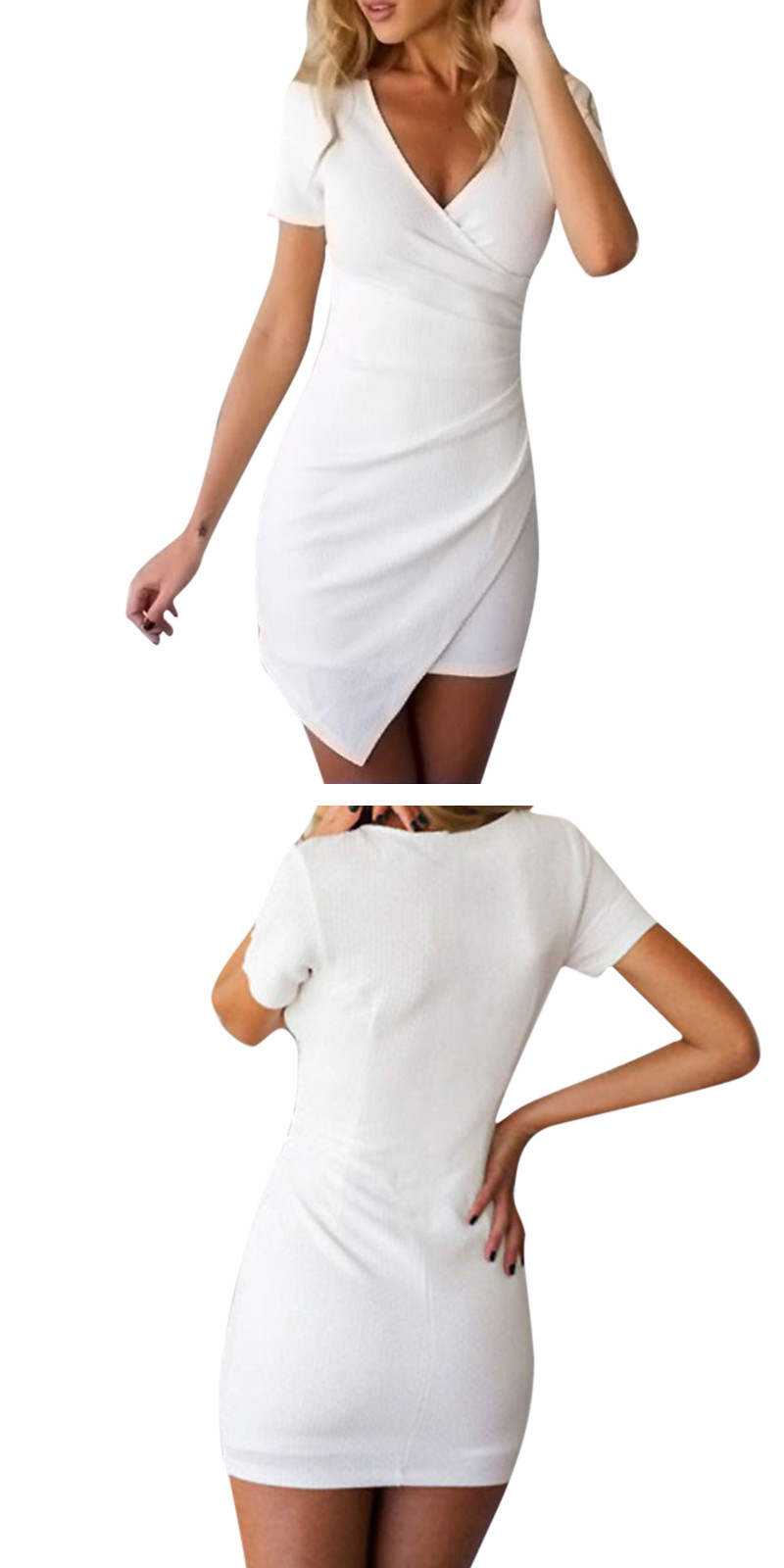 Neue Ankunft 2016 Sommer Frauen sexy tiefem V-Ausschnitt Schlank Stretch Asymmetrie Bleistift Kleider Kurzarm Mini Nacht Club Party Kleid Z1