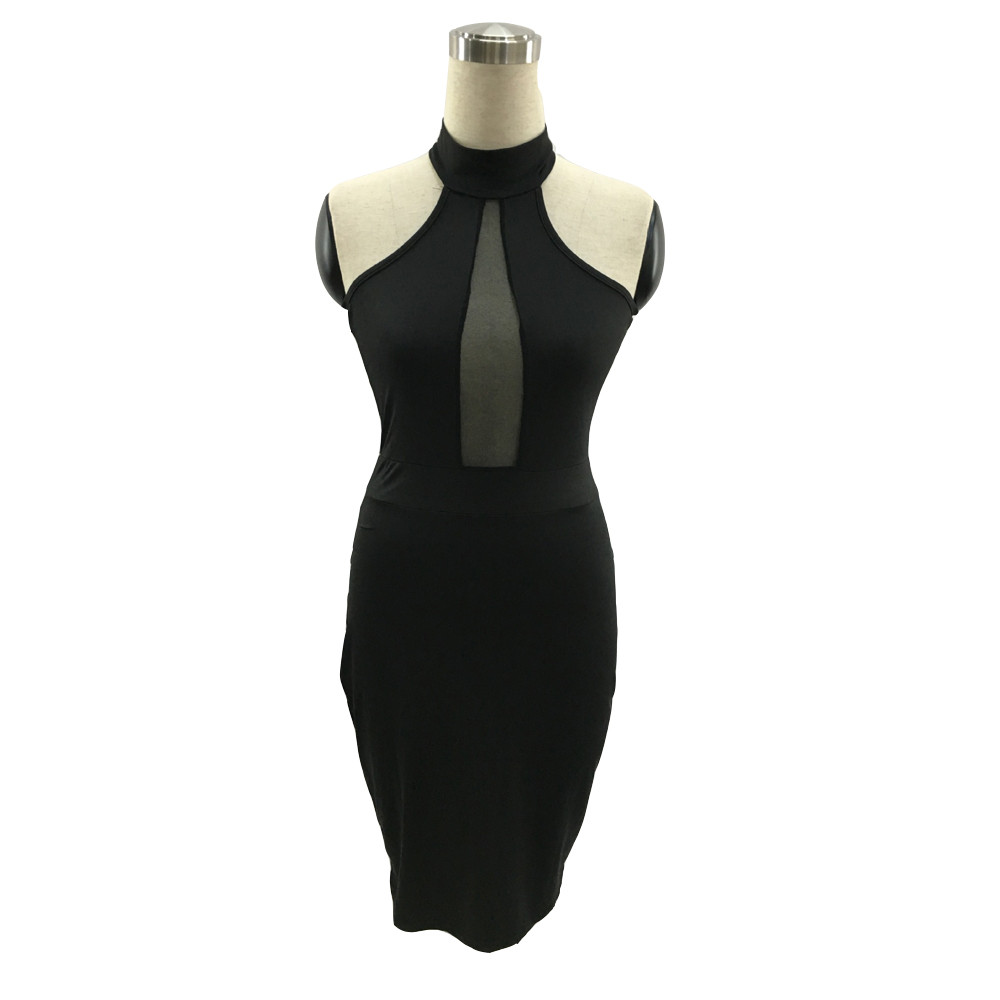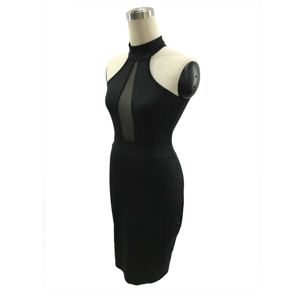 frauen Ärmelloses Kleid Sexy Neckholder Backless Gaze Splice Perspektive Kleid