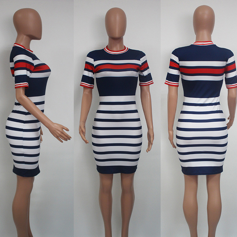 Neue Design 2016 Heier Verkauf Frauen Strand Gestreifte Kurzarm Boho Sexy Minikleid Jul18