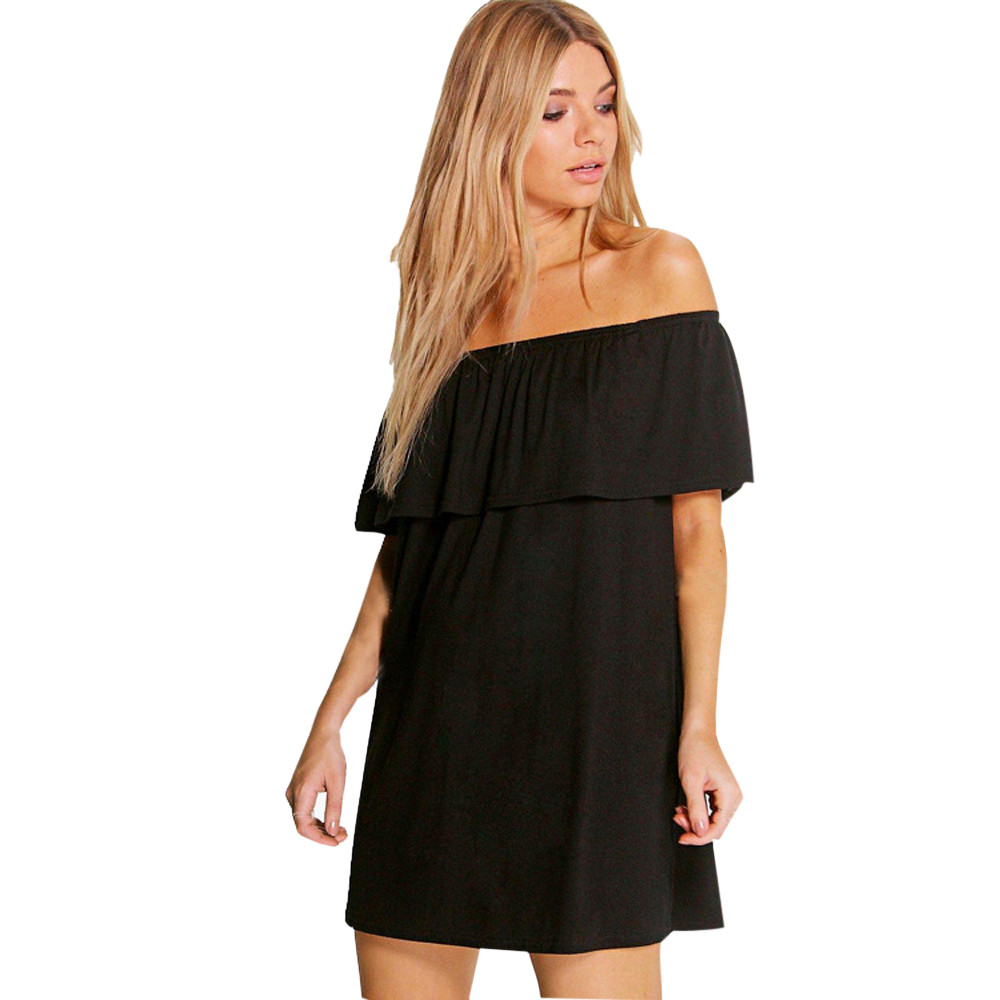 Plus gre Sexy der schulter kleid 2016 Schwarz Neue Frauen Sommer stil Wort Trgerlose Kleider Fashion Flounced Kragen Kleid vestidos