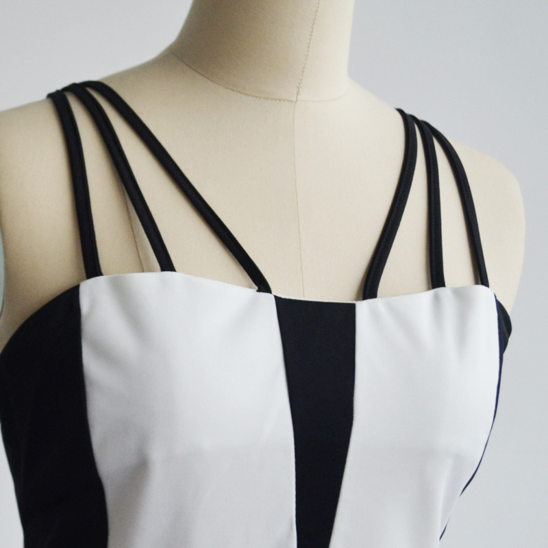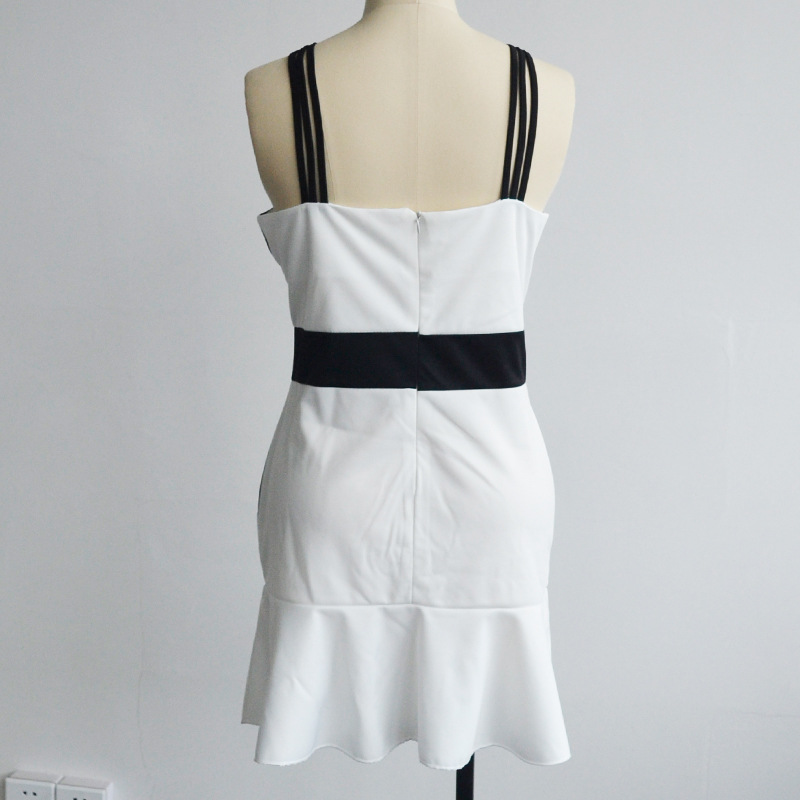S-XXL Frauen Dame Sommer Sexy Hfte Paket Meerjungfrau sleeveless strich hals Schlug Farbe Mini Kleid vintage Party New white & schwarz