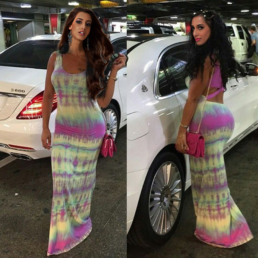 Sexy Boho Frauen Sommer Beilufiges Sleeveless Lange Maxi Kleid Strandkleid Sommerkleid