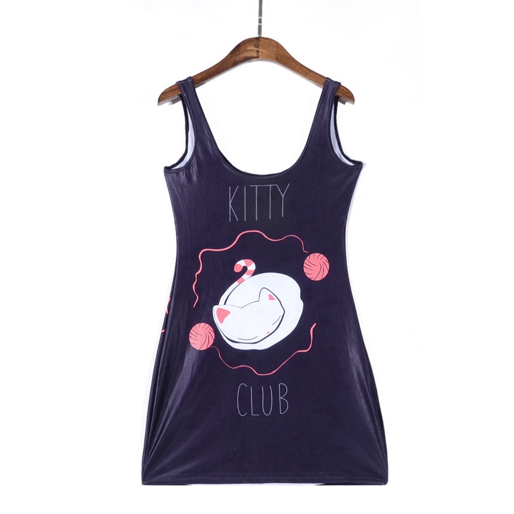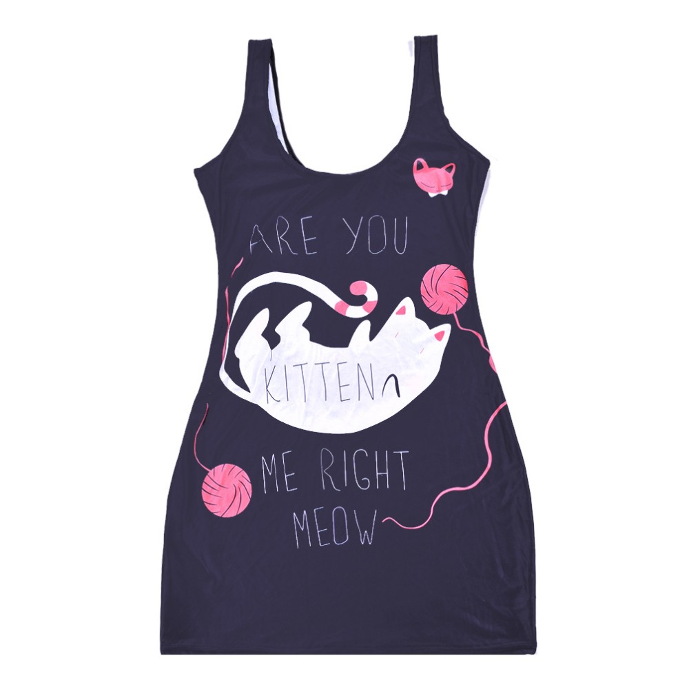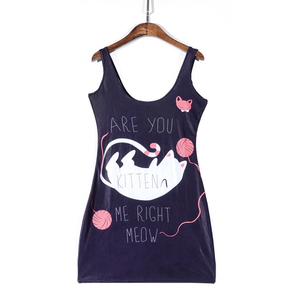 Sexy frauen sommerkleid Mode katze Digital Print Sommer rmelloses KLEID vestidos Drop Ship
