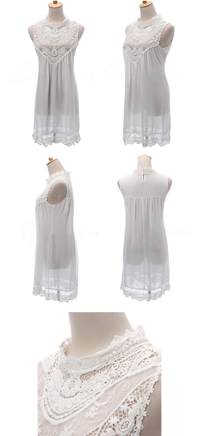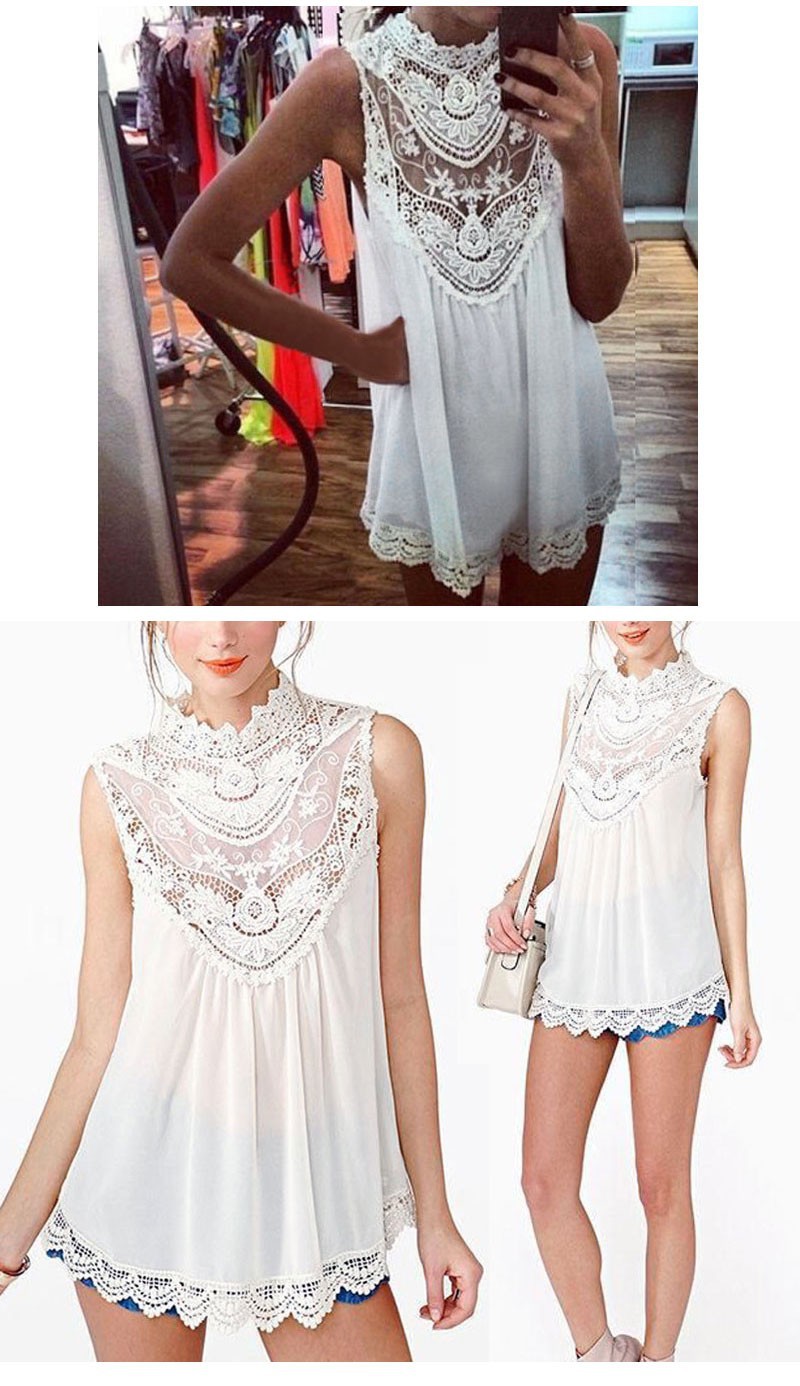 Sexy frauen Spitzen Chiffon Abendkleid Top Sommer Short Strand Dame Sleeveless O-ansatz Aushhlen Blume Mini kleid