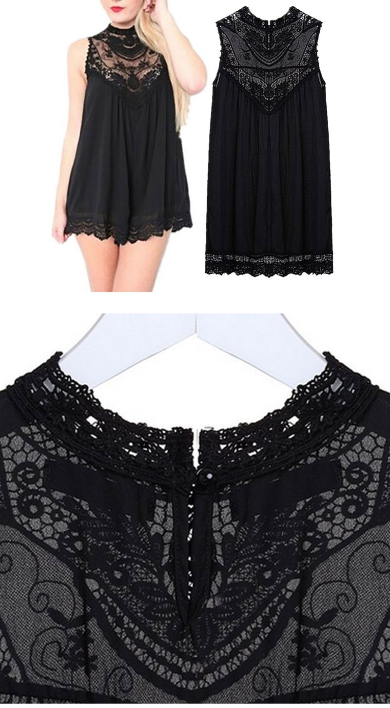 Sexy frauen Spitzen Chiffon Abendkleid Top Sommer Short Strand Dame Sleeveless O-ansatz Aushöhlen Blume Mini kleid