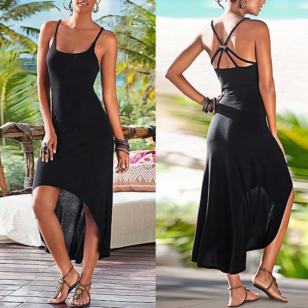 Sommer 2016 sommerkleid sexy backless schulterschlaufenlnge strandkleid frauen kleidung gewand femme vestido de festa unregelmige Club dressw1