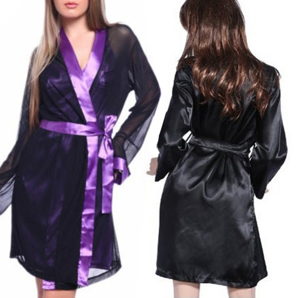 Spaghetti-trgern Nachtwsche Robe Sexy Lingerie Satin Lace Nachthemden Kimono Intimate Sexy Faux Seide Kostme Kleid Set Schlafanzug W1