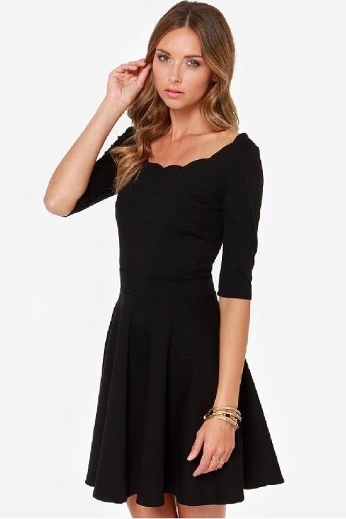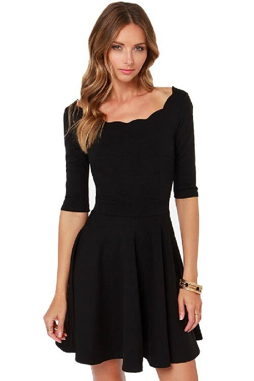 Tidesource 2016 halben Hlse einzigartige Scoop Kragen Frhling Sommer Kleid sexy dnne Mini Vestidos Elegante schwarze beilufige Party Kleider