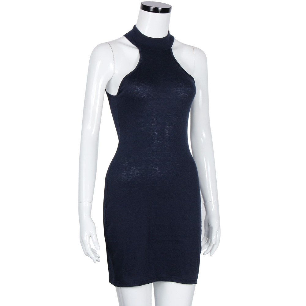Tonsee Frauen sexy Kleid aushöhlen knielangen sleeveless weg schulter Rollkragen Cocktail Bodycon Kleider #56