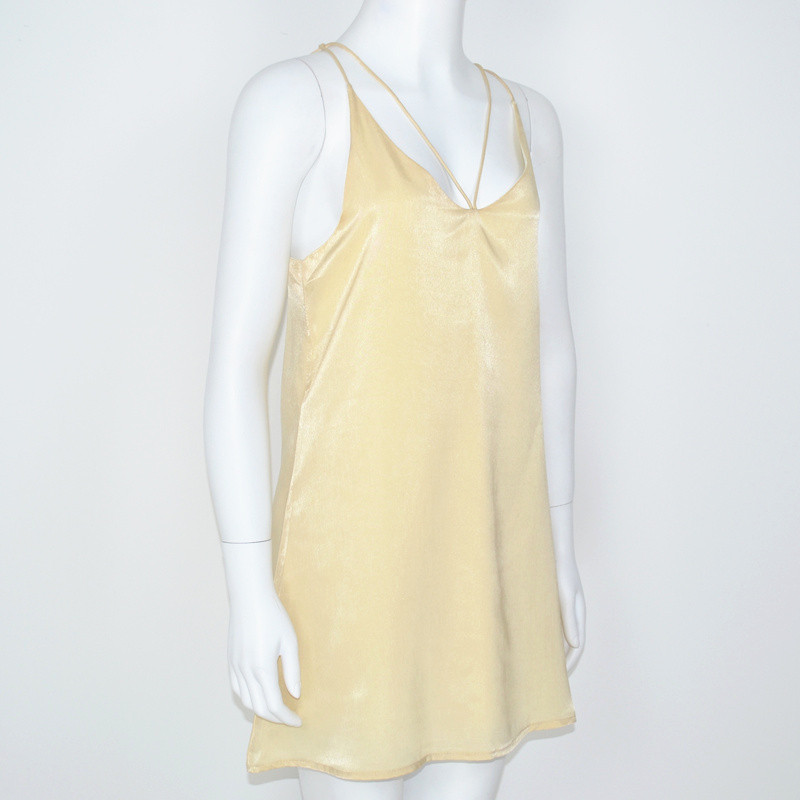 VERSCHIFFEN-DS301 Champagner Frauen Satin Slip Kleid Sexy V-ausschnitt Spagehetti Bgel-kreuz Silky Kleid A-Line Party Kleider Casual Vestidos Neue