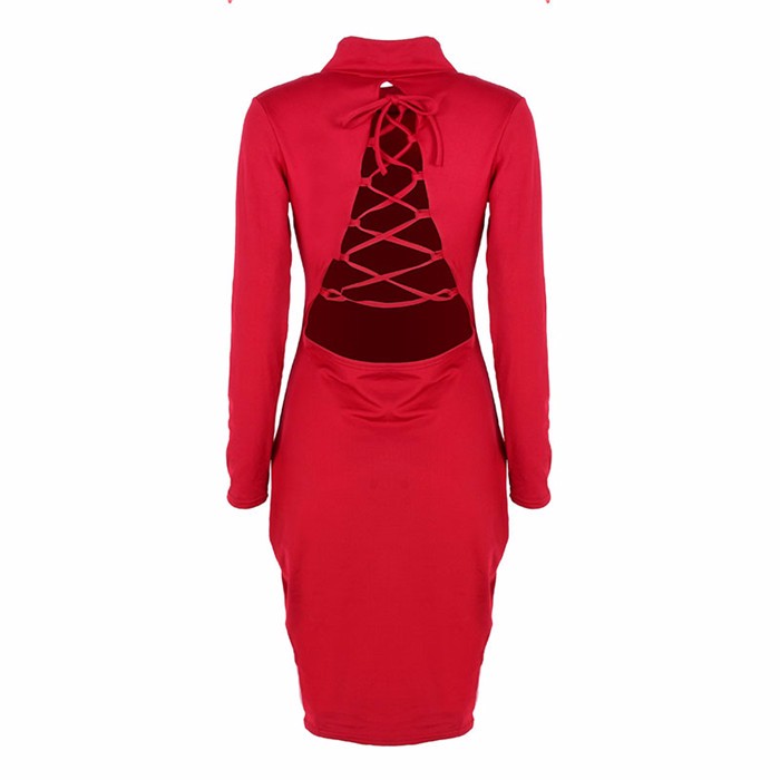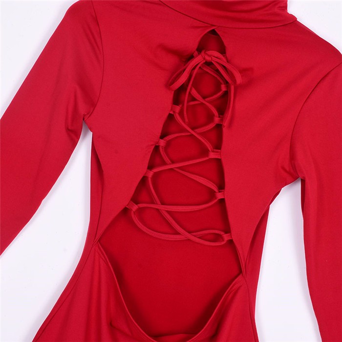 Winter Frhling Herbst Frauen Halfter Gurt langrmeligen Kleidern Baumwoll-stretch Sexy Bodycon Backless Kleid LH7s