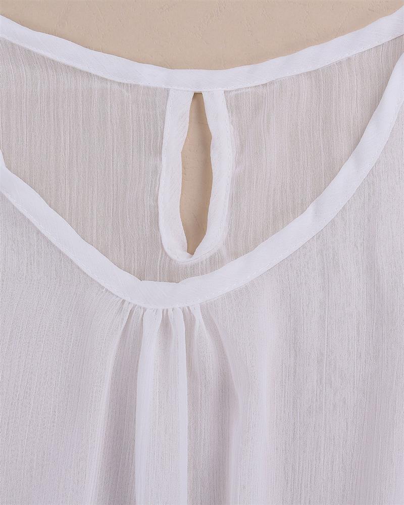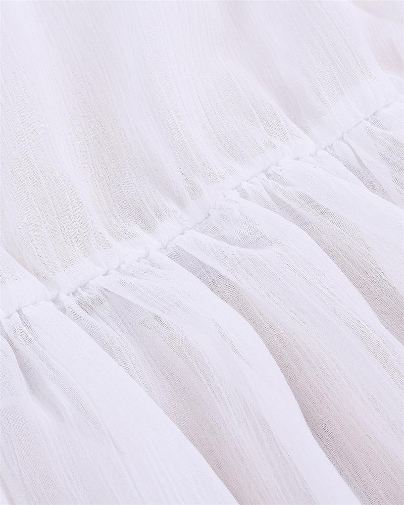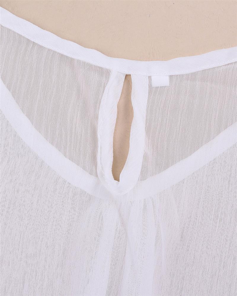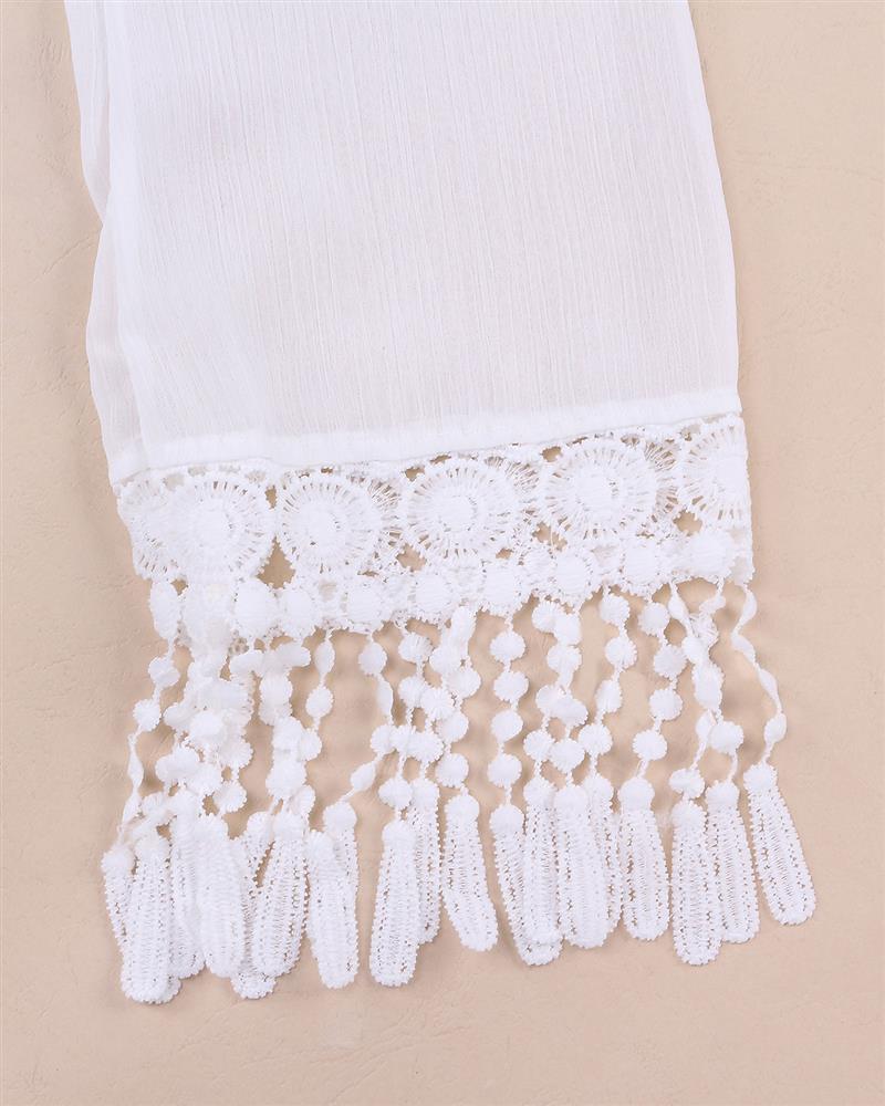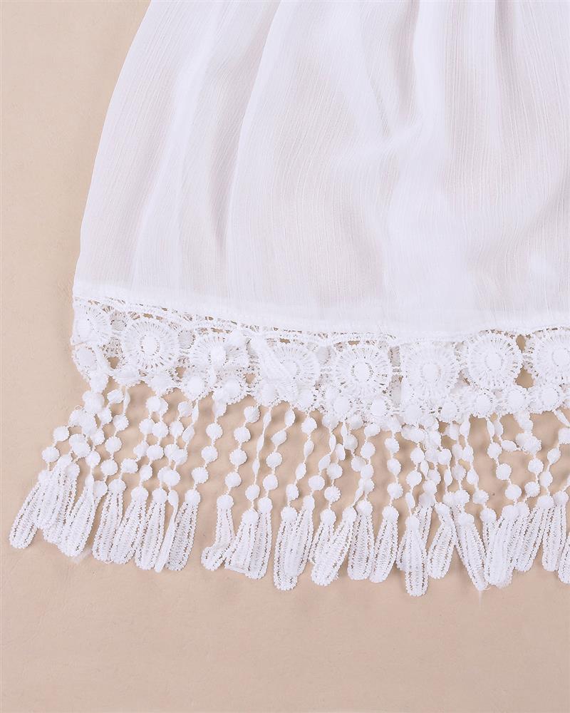 Zanzea Sexy Frauen Sommer Chiffon-kleid Vestidos Lange Hlse Boho Quaste Spitze Patchwork Tunika Aushhlen Strand Minikleid