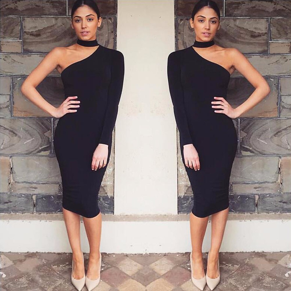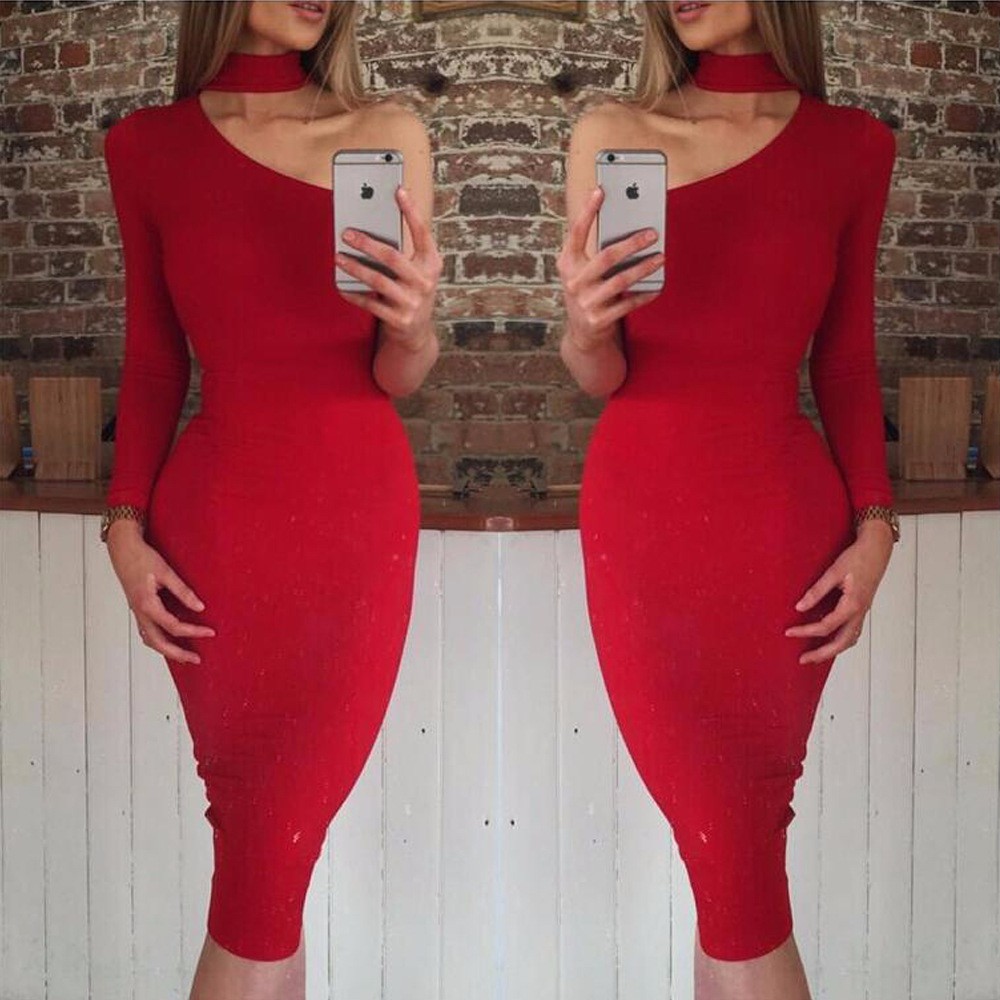 2016 herbst Kleid Neue Mode Kurze Einfarbig Sexy Halter Einzel rmel Schrge Schulter Frauen Beilufiges Party-bleistift-kleid