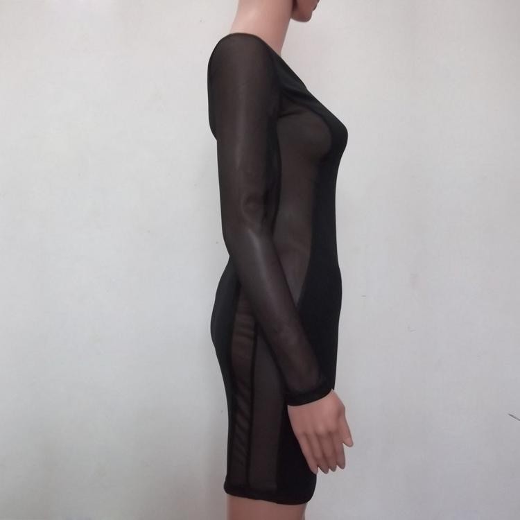 2016 neue Transparenz Mesh-Patchwork Langhlse Frauen Kleid Sexy Mantel Bodycon Club Cocktail Party Kleider Plus Gre Vestidos
